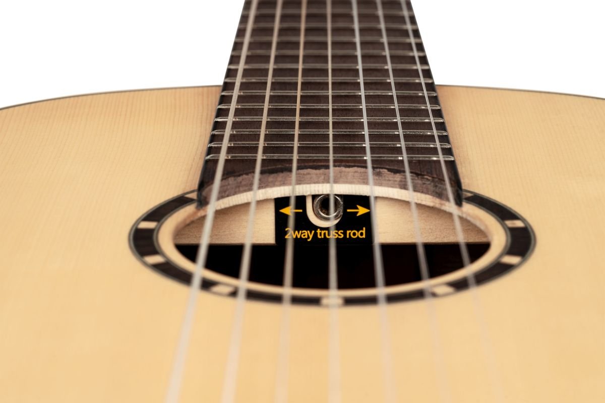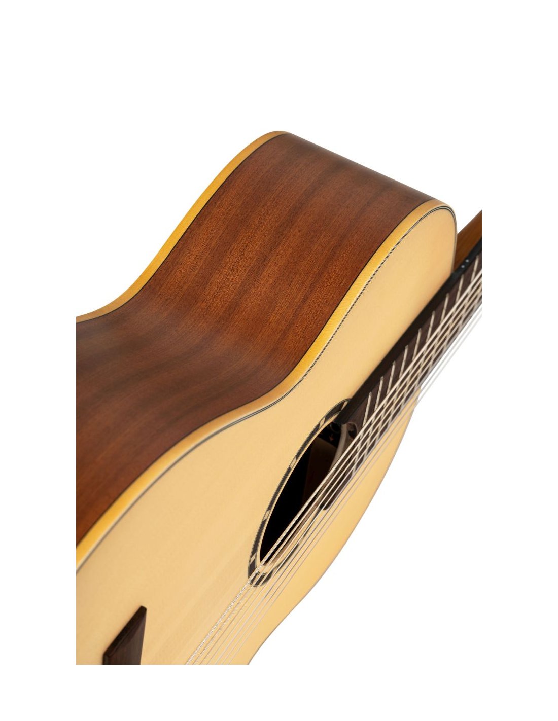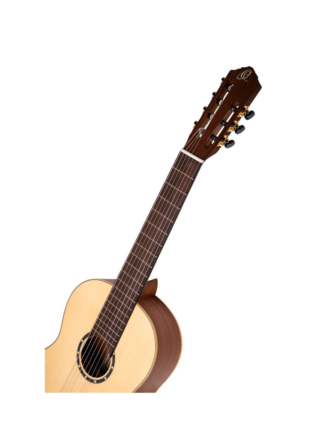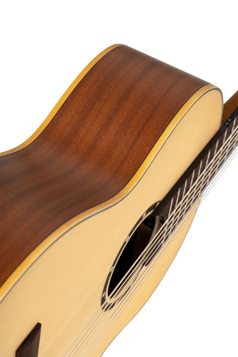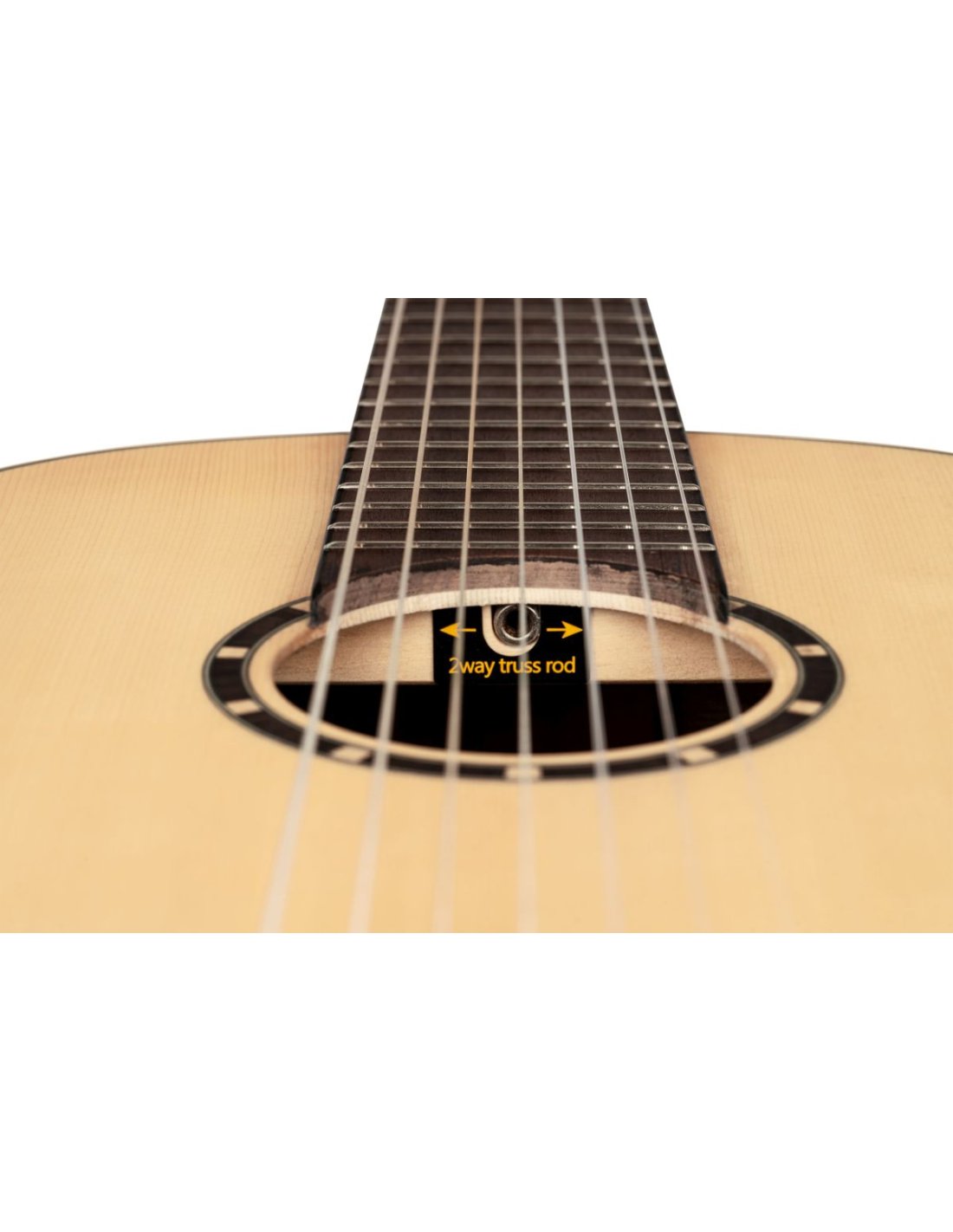 'Nos nouveaux modèles de guitares Family Series à 7 cordes sont équipés d'une corde de SI basse, ce qui étend votre gamme et vous permet de jouer de nombreux styles musicaux, comme le classique, le latino ou même le metal acoustique. Accorder votre guitare est simple grâce aux mécaniques personnalisées. Le dessus en épicéa massif et le corps en sapele produisent un son agréable, tandis que la large largeur du sillet et le pont Ortega à 12 trous offrent une expérience sonore confortable. Si vous souhaitez affiner vos compétences à la guitare, les modèles à 7 cordes sont une option fantastique. Les modèles sont livrés avec un étui de concert deluxe rembourré.Guitare Classique 7 cordes 4/4Top en épicéa massif, finition satinéeFond et éclisses en sapele, finition satinéeManche en Nato, finition satinéeTruss rod à 2 voiesBinding en ABS noirTouche et pont en noyerÉchelle : 650mm / 25,59'' Frettes : 19Largeur au sillet : 60mm / 2,36'' Pont Ortega 7 TrousOrtega2023'