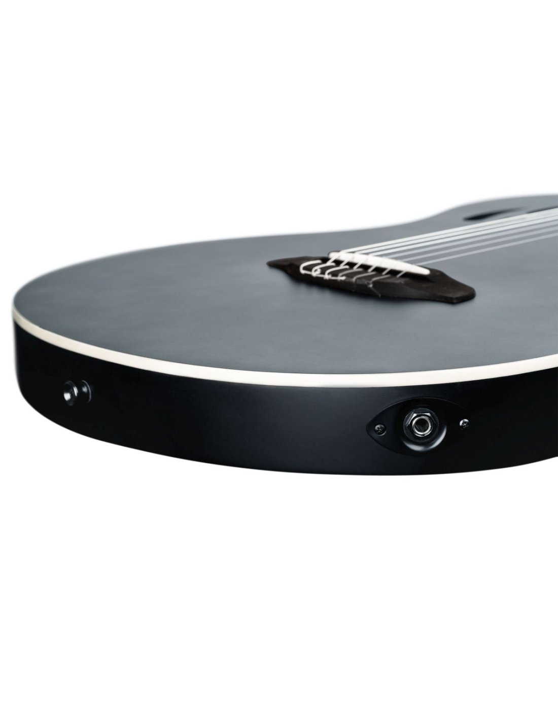 La guitare électrique révolutionnaire avec des cordes en nylon TourPlayer conçue pour les performances en direct, offrant la chaleur et la résonance authentiques d'une guitare en nylon tout en éliminant les problèmes de rétroaction. Explorez un monde de possibilités sonores que vous n'auriez jamais pensé possibles sur une guitare en nylon. Le TourPlayer combine la beauté des cordes en nylon avec la puissance et l'émotion d'une guitare électrique, offrant l'innovation à son meilleur.Caractéristiques :Corps en Okoumé massif avec cutout, finition brillanteTable en finition satin noirManche en okoumé, finition mateDiapason et pont en laurierÉchelle : 650mmLargeur au sillet : 48mmFrettes : 19Cordes : NYP44HMécaniques Deluxe ClassicalPont Ortega à 12 trousJointure au 14ème fretBinding latéral en acajou flamméSillet en osSac de concert TourPlayer inclus.