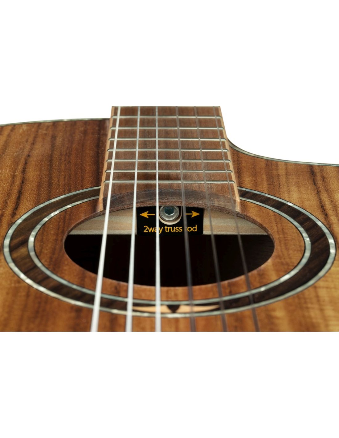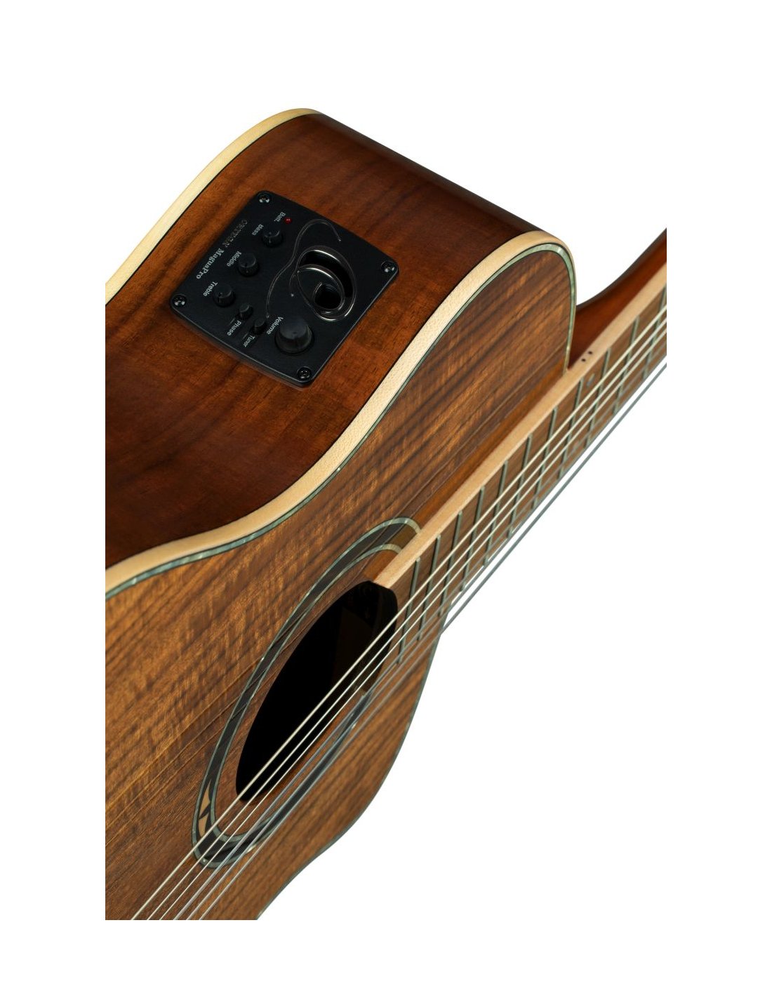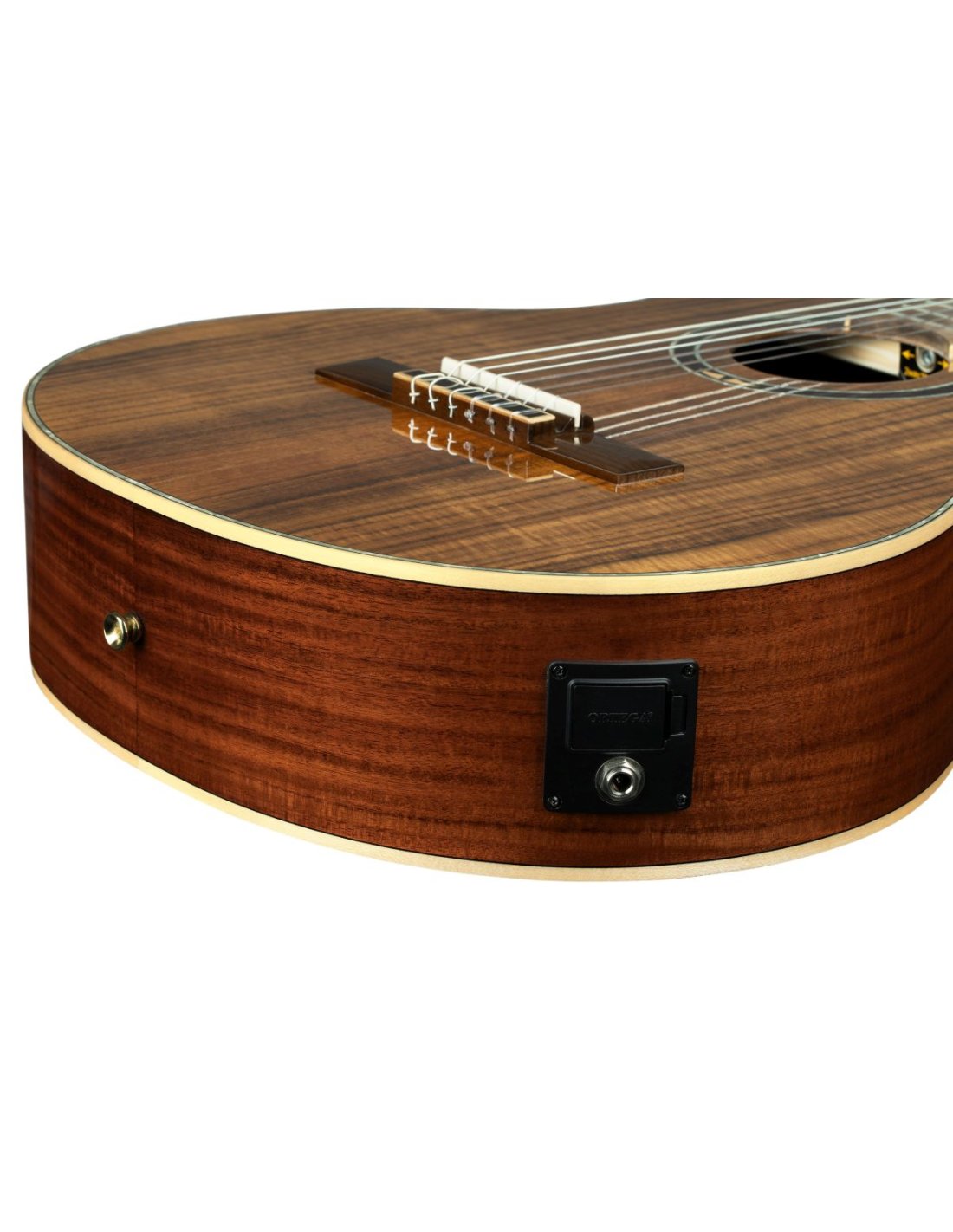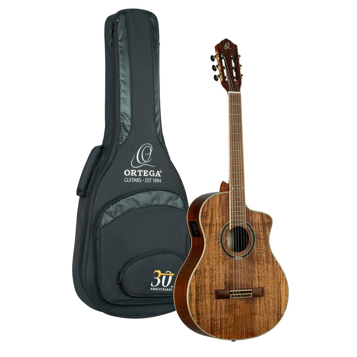 Pour célébrer le 30ème anniversaire d'Ortega Guitars, nous sommes fiers de présenter deux magnifiques guitares à cordes en nylon fabriquées en bois d'acacia AAA. La guitare Ortega Guitars 30th Anniversary brille avec un superbe dessus, un fond et des éclisses en acacia sélectionné AAA. Le bois d'acacia offre un son chaud et doux avec une robuste gamme médiane, ce qui le rend parfait tant pour les styles de fingerpicking que pour le strumming. De plus, cette exceptionnelle guitare est dotée du système innovant de préamplification rechargeable MagusPro/G pour une expérience musicale extraordinaire. Une housse pour le 30ème anniversaire d'Ortega Guitars est incluse. Célébrez avec nous et découvrez la beauté et la précision de ces instruments de perçage en édition limitée. Taille : 4/4. Largeur du sillet : 47 mm (1,85”). Échelle : 650 mm (25,59 pouces). Dessus : Acacia flammé AAA sélectionné, finition brillante Fond et éclisses : Acacia flammé AAA sélectionné, finition brillante Style : Nato, finition satinée Touche et chevalet : Noyer Type de corps : Cutaway Électronique : MagusPro/G Système de préamplification pour guitare avec accordeur Rembourrage : Érable avec / ABS noir, rembourrage de la touche en érable Profil supérieur : Érable avec noir / Perle / ABS Noir 3 incrustations en points en érable/perle sur la touche 12 Chevalet : Truss Ortega à 12 trous : Échelle à 2 voies : 650 mm (25,59 ”) Largeur du sillet : 47 mm (1,85 ”) 30ème Anniversaire avec housse incluseORTEGA2024