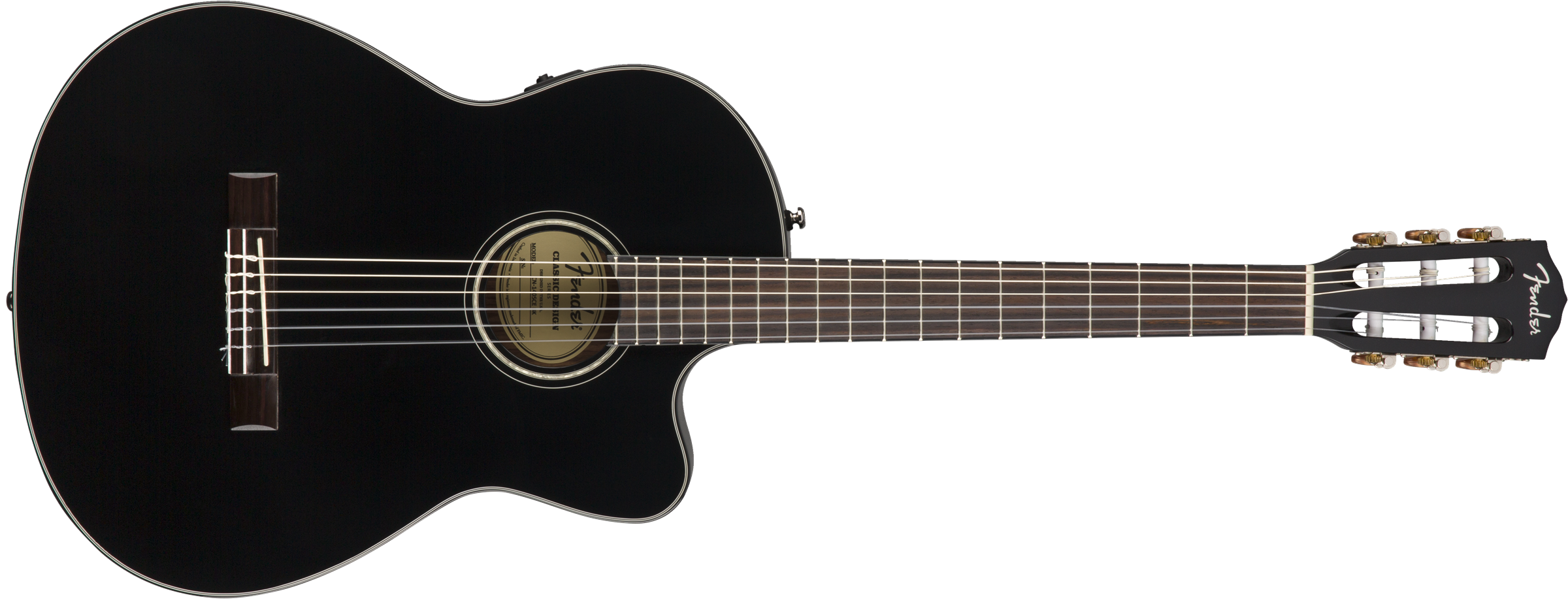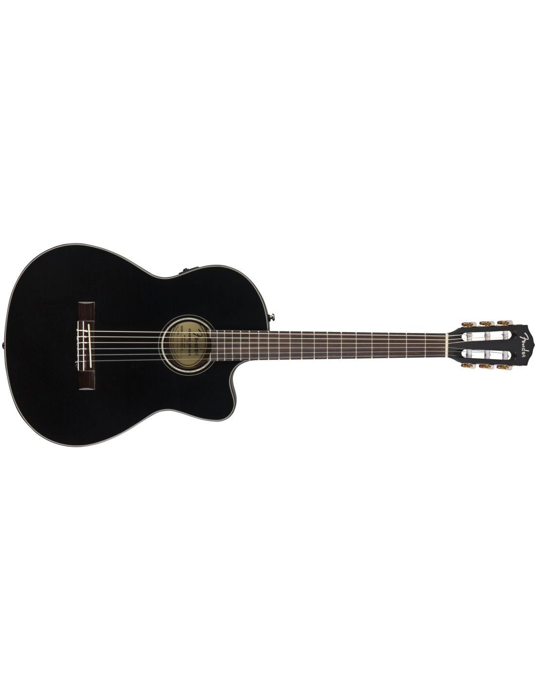 Guitare Classique Fender CN-140SCE BLK WC couleur NOIRE. La Fender CN-140SCE BLK WC est une guitare classique électrifiée à 6 cordes. Les caractéristiques techniques incluent un fond et des éclisses en palissandre laminé, une table en cèdre massif, un manche en acajou, un sillet en noyer, une épaule manquante, amplification Fishman CD Preamp. Étui rigide inclus.