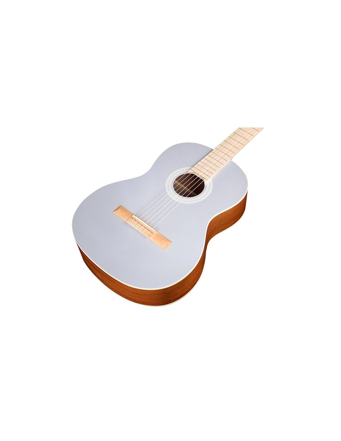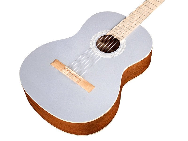 'Donne vie à ta musique en couleur avec la Protégé C1 Matiz ! Une nouvelle interprétation de l'esthétique traditionnelle de la guitare à cordes en nylon, la série Matiz combine des accents d'érable et des bois traditionnels dans 4 couleurs attrayantes : Aqua, Corail, Ciel Pâle et Bleu Classique. Le dessus en épicéa et le fond et les éclisses en acajou fournissent la projection et la chaleur associées à une guitare à cordes en nylon, tandis que le sillet, le chevalet et le manche en érable confèrent à la C1 Matiz un look complètement nouveau avec une réponse tonale vive. La finition polyuréthane satinée offre une couche de protection contre les éraflures et les rayures, tandis que la rosace ''ghost'', conçue sur la base de notre rosace traditionnelle en bois, permet aux attrayants dessus colorés de la C1 Matiz de briller et d'être au centre de l'attention. Inclut une housse en nylon recyclé, assortie, qui protégera l'instrument de manière responsable et durable.'