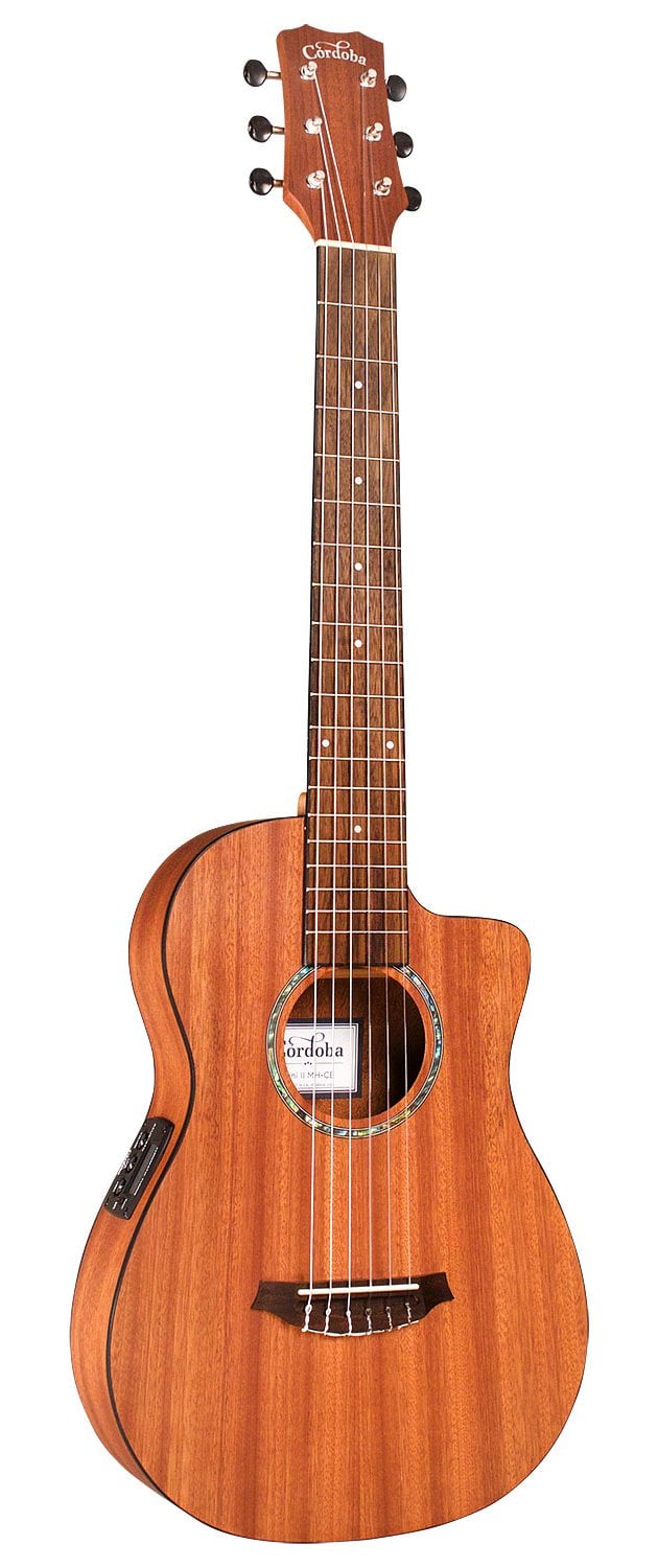 'La guitare de voyage la plus populaire de Córdoba est maintenant dotée d'un cutaway et d'un préamplificateur ! La longueur de la touche de 580 mm (22 7/8'') de la Mini II MH-CE s'accorde parfaitement à la norme MI, rendant facile de gratter toutes vos chansons préférées. Son profil réduit la rend facile à transporter, tout en maintenant un ton bien arrondi. Construite avec des bois entièrement en acajou, la Mini II MH-CE possède une voix chaude qui projette exceptionnellement bien pour ses dimensions réduites et inclut un préamplificateur Cordoba MG102, doté d'un égaliseur à 2 bandes et d'un accordeur intégré. À la maison ou en voyage, la Córdoba Mini II MH-CE est prête partout et à tout moment où l'inspiration vous vient.'