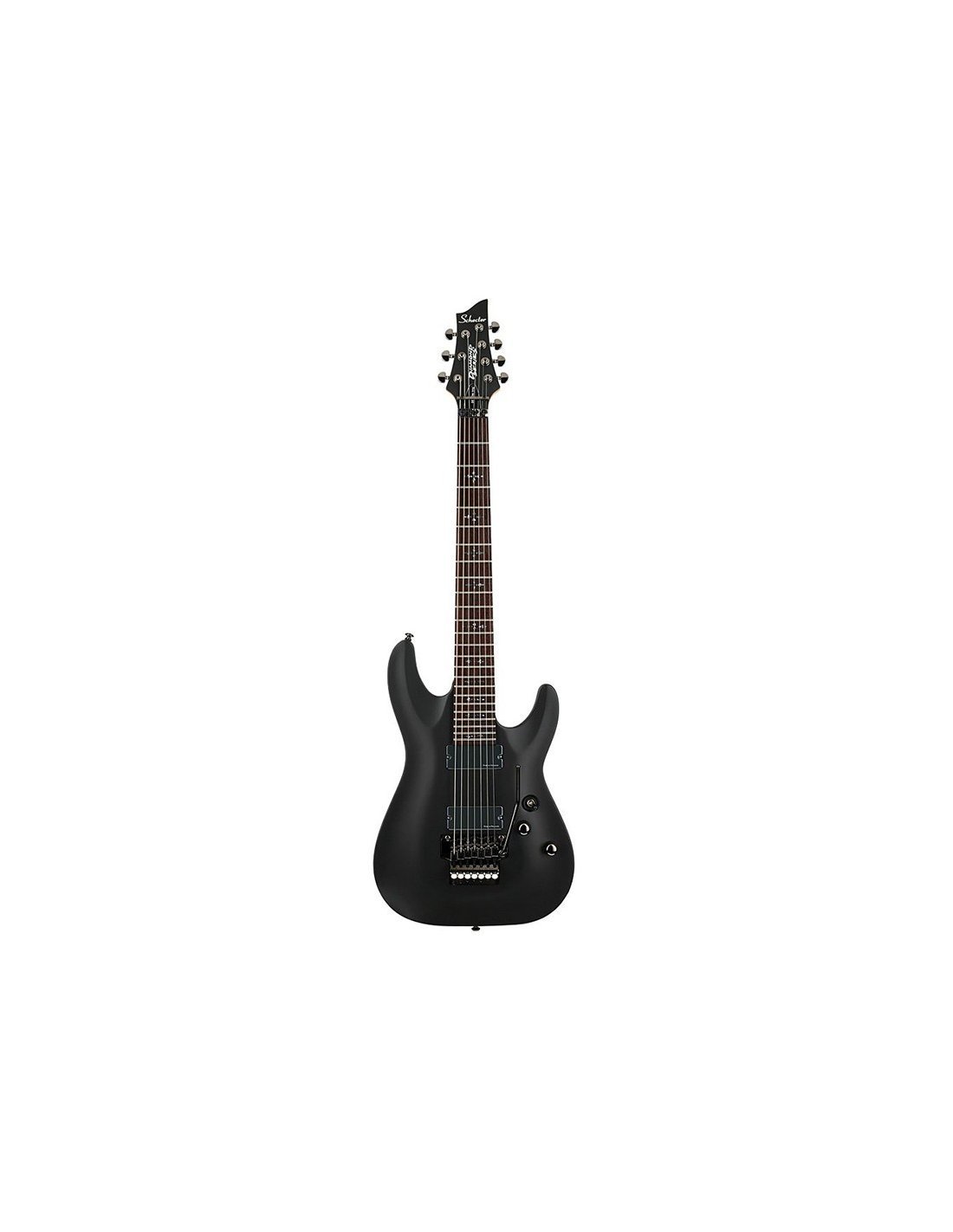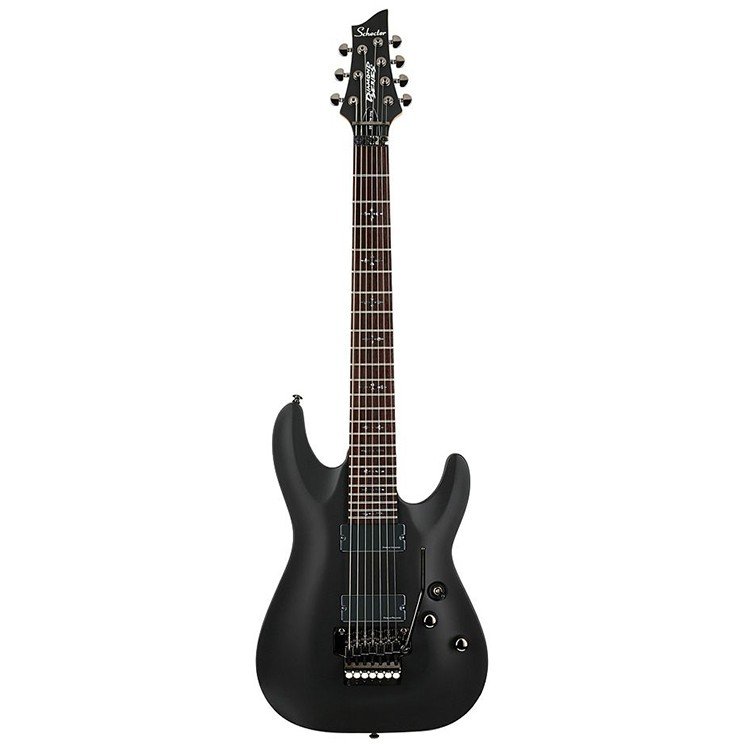DEMON-7-FR-ABSN - Guitare électrique 7 cordes - Structure : vissée - Corps : tilleul - Manche : érable Thin C - Touche : wengé - Échelle : 26,5 - 24 frettes X-jumbo - Rayon : 16 - Binding : crème vieillie - Incrustations : “croix gothique en perloïde gris” - Micros : 2x Humbucker Schecter Diamond Active HB-105S - Contrôles : 1x Ton + 1x Volume + Sélecteur à 3 positions - Pont : Floyd Rose Special Hot Rod - Mécaniques : Schecter - Finitions des accessoires : noir chromé - Sillet : Floyd Rose Special 48mm - Couleur : noir vieilli - Finition : satinée.