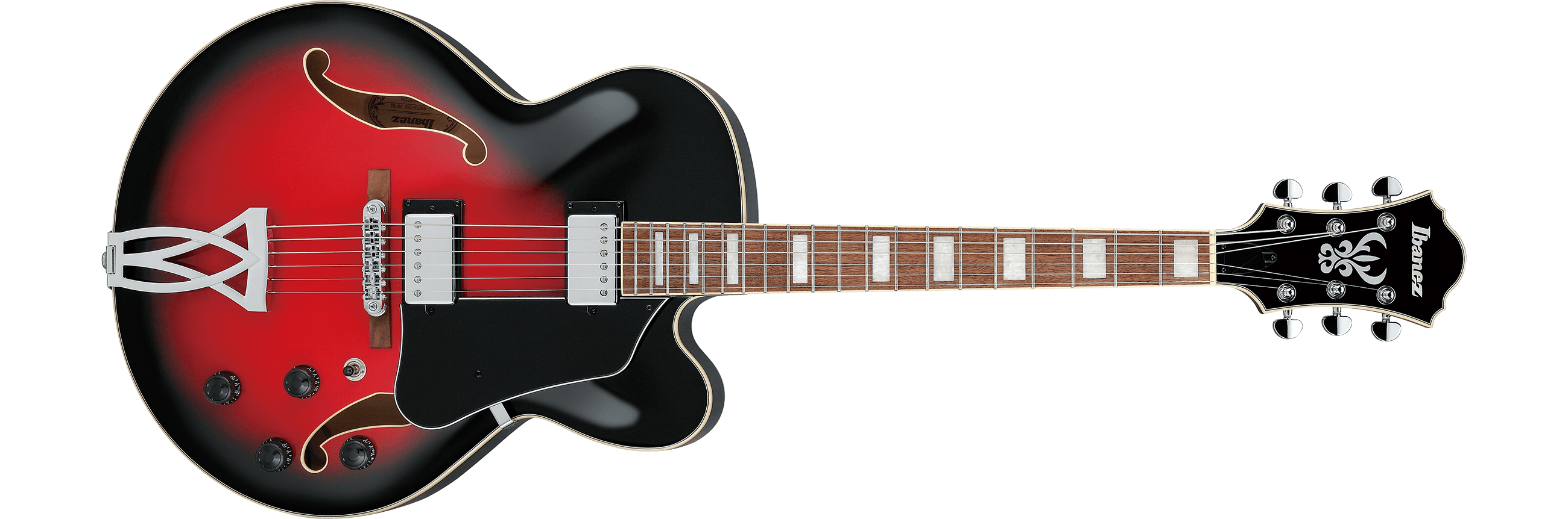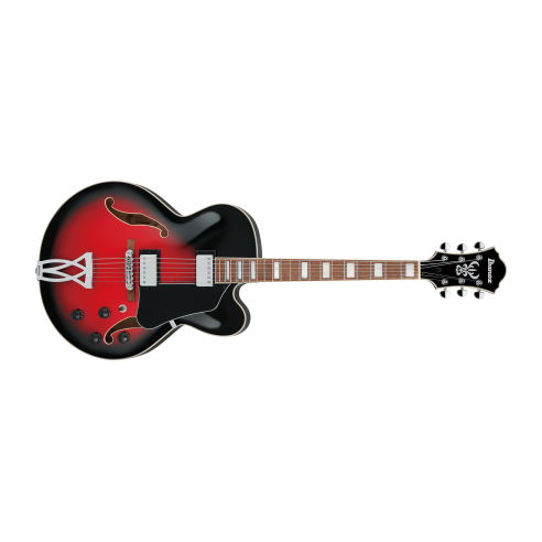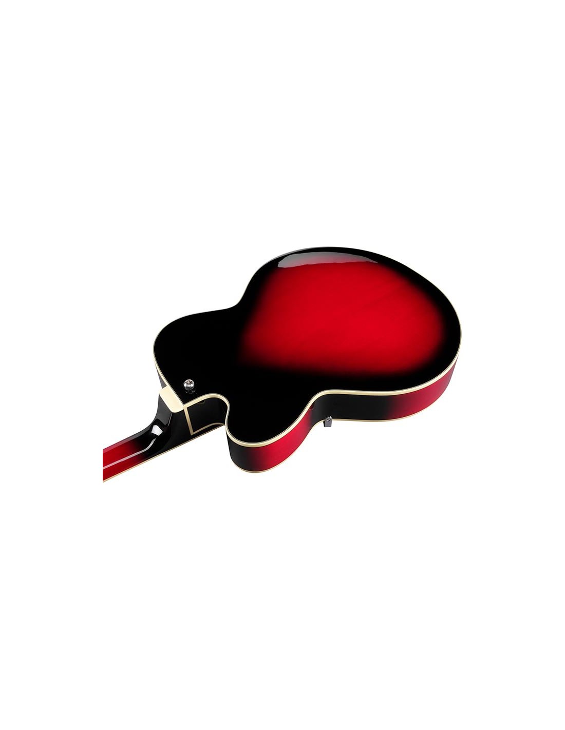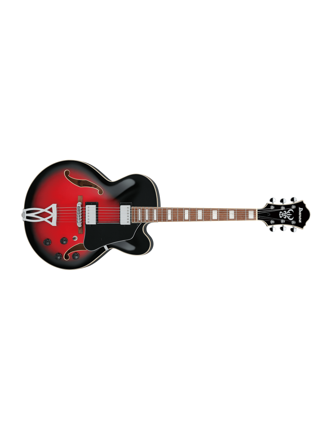 IBANEZ AF75 TRS est une guitare semi-acoustique hollow body, modèle Ibanez Artcore AF75, avec un corps, un fond et des éclisses en tilleul, un manche en Nyato AF Artcore Set-In, un doigté en noyer relié à un rayon de 12" avec 20 frettes Medium et des incrustations en bloc acrylique, un sillet de 43 mm, du matériel chromé, des mécaniques sous pression avec des clés "Half Moon" et un pont Gibraltar Performer bridge avec une corde VT60 Chrome. L'électronique à configuration HH se compose de 2 micros Classic Elite Humbucker Passive/Céramique au chevalet et au manche avec 2 contrôles de volume master, 2 contrôles de tonalité master et un sélecteur de micros à 3 voies.