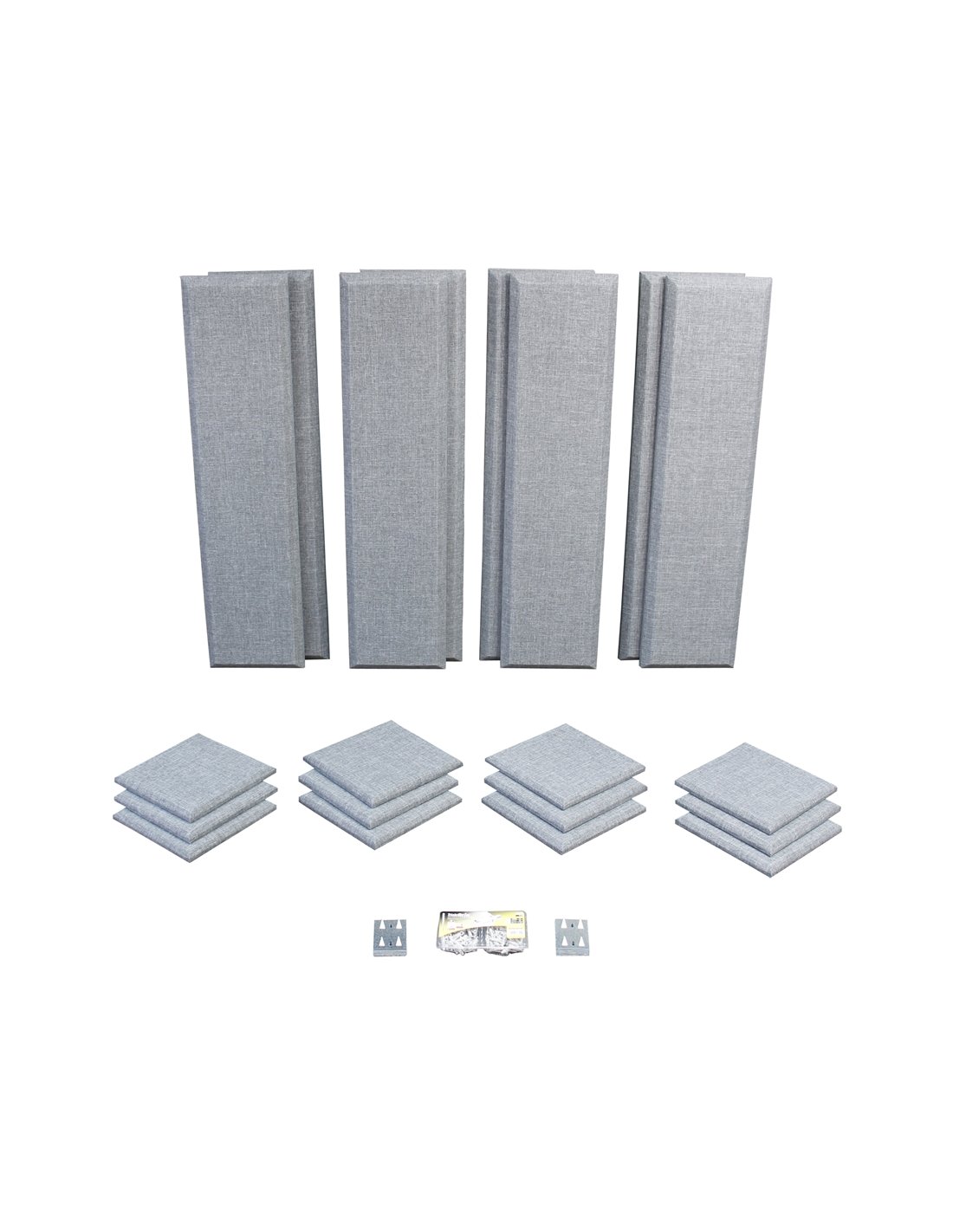 Z900-0100-08"Le kit parfait pour un studio de projet". Comprend 20 panneaux pour contrôler les premières réflexions et les délais ainsi que pour aider au mixage. Chaque panneau est fabriqué en laine de verre de haute qualité. Le kit est fourni avec des clips, des vis et des chevilles murales. Couleur Grise.