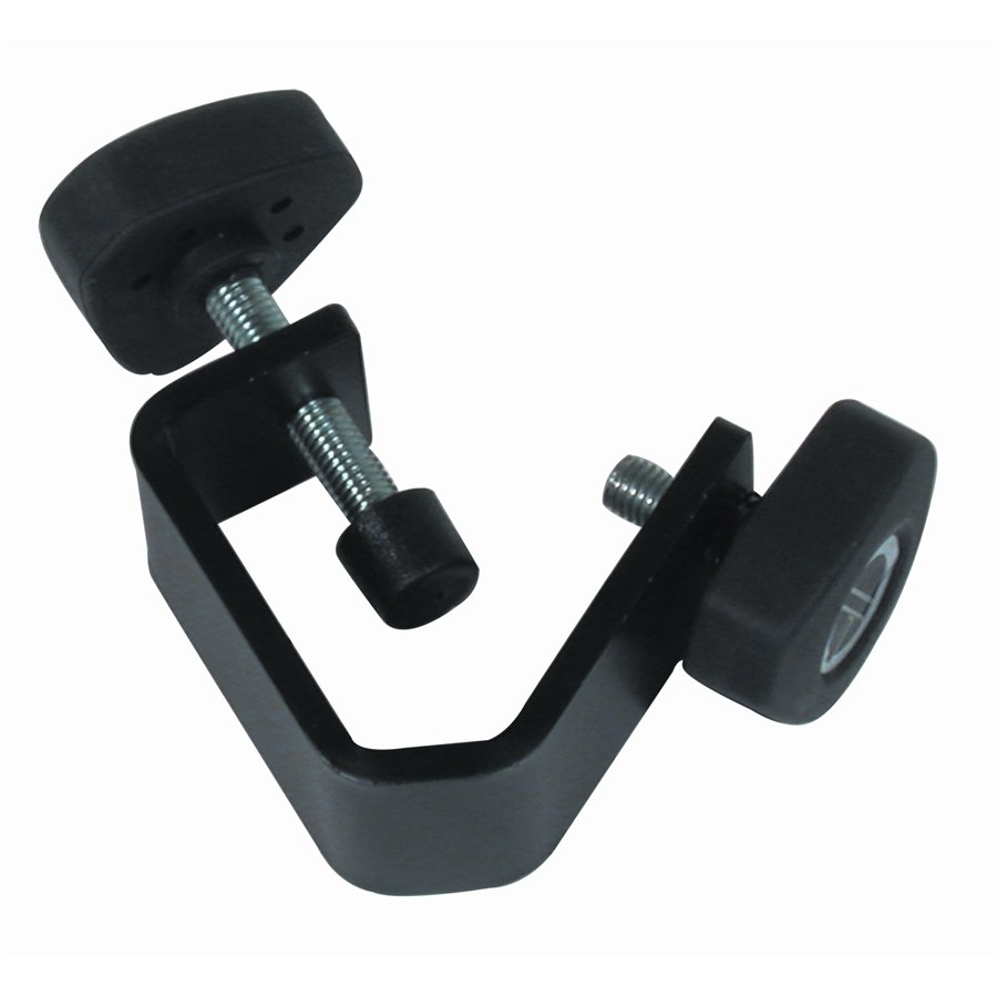Étrier universel en C pour projecteurs et effets lumineux, peut être monté sur tout tube de 25 à 50 mm de diamètre. Construit en acier épais, il est fixé au pont manuellement sans l'aide de clés ou d'outils.