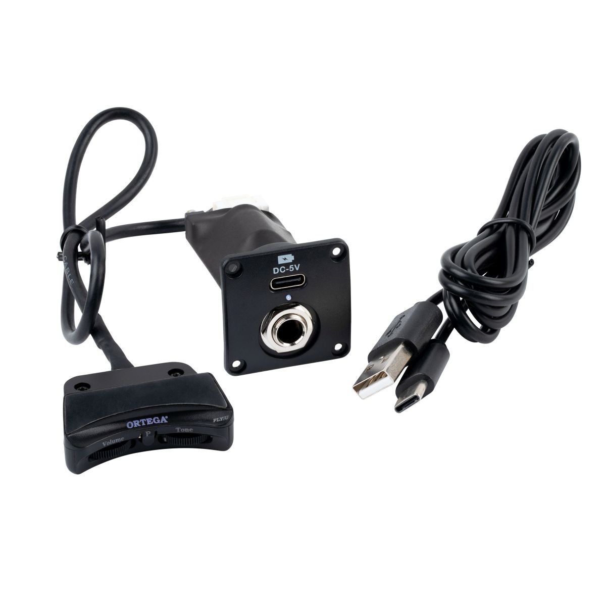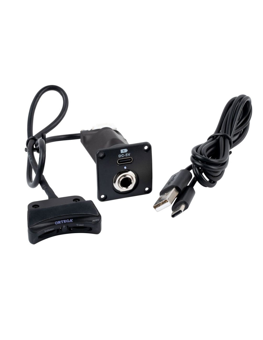 Jack de sortie active avec système de préamplification avec contrôle à la rosace pour ukulélé.Pas besoin de faire une découpe latérale, facile à installerAlimenté par une batterie intégrée rechargeable (USB-C)Contrôle du volume et des tonalités (conçu pour le branchement à la rosace interne)Inclut un micro flexible, un serre-câble et un câble USB-CAméliore ton son lorsque tu te connectes avec la large variété de préamplificateurs et de systèmes de micros d'Ortega Guitars. La particularité est que tous les systèmes sont rechargeables via un câble USB-C.Ortega2023