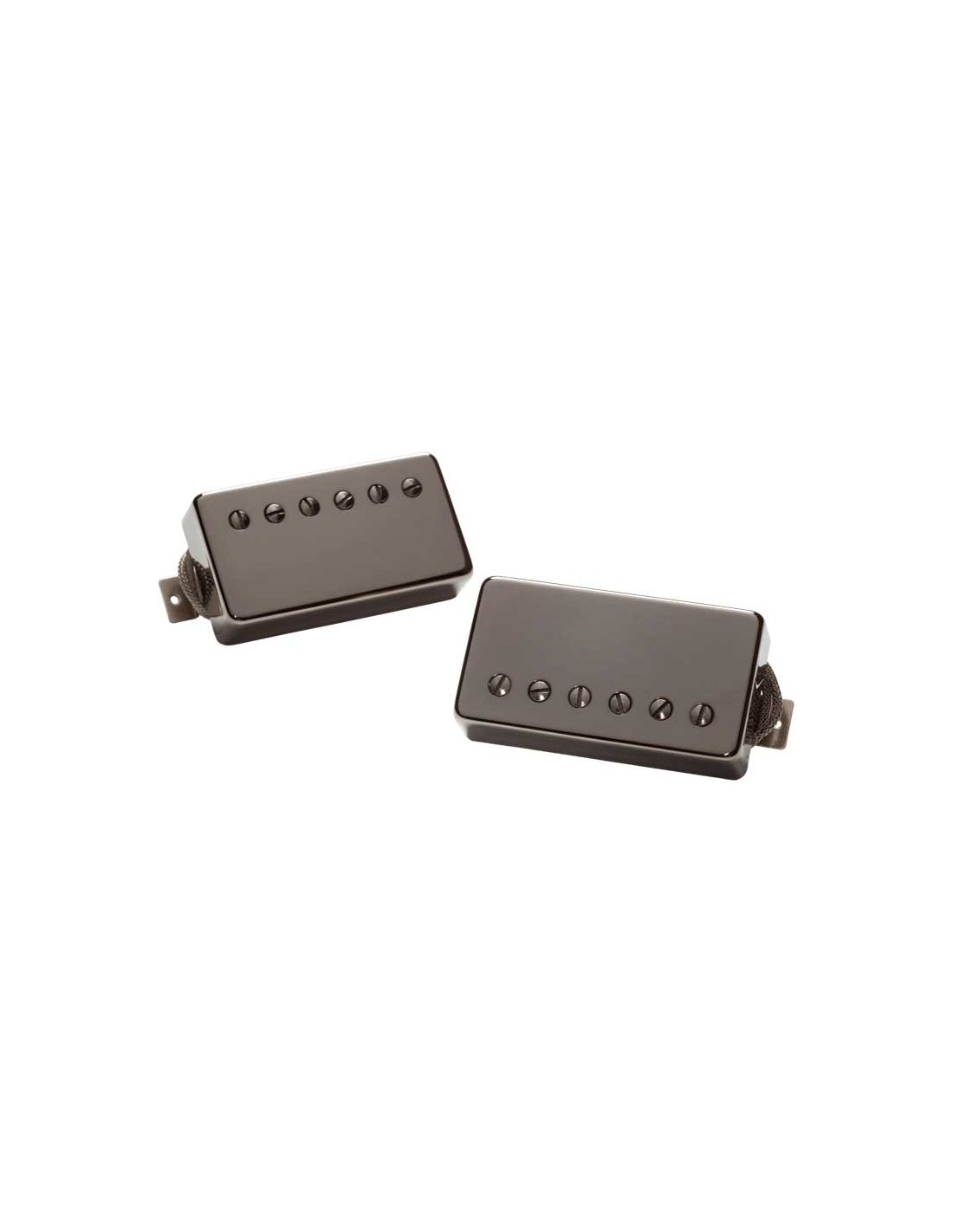 11104-08-BNc Ensemble de Humbucker spécifiquement doublé par Slash pour donner à toutes ses Les Paul ce ton d'appétit pour la destruction. Lorsque Slash a eu l'honneur d'avoir un modèle Gibson Les Paul Signature construit, nous avons utilisé les mêmes humbuckers Alnico 2 Pro qu'il a utilisés pendant des décennies. Il s'avère que les nouvelles guitares sonnaient considérablement différentes de l'original. Donc, nous avons relevé le défi de lui faire un nouveau pickup qui ferait sonner toutes ses nouvelles guitares signées exactement comme l'original AFD Les Paul. Le résultat est le modèle humbucker Slash Signature. Nous avons utilisé un fil magnétique différent et des spécifications d'enroulement qui, lorsqu'ils sont combinés avec l'aimant Alnico à 2 barres, fournissaient exactement ce qui était nécessaire pour pousser une Les Paul standard vers ce sustain, ce grincement et cette gamme moyenne familiers qui étaient si caractéristiques du ton de la Derrig Les Paul originale, copiée pour Slash. Les humbuckers Slash sont fabriqués à la main à Santa Barbara de la même manière que nous avons construit ses originaux dans les années 80, avec une plaque inférieure en argent nickelé avec des pattes de montage longues, un fil conducteur tressé à conducteur unique, un entretoise en érable, du ruban de papier et un revêtement en cire. ``Post scriptum´´, au cas où vous vous poseriez la question, oui, l'ensemble que vous achetez est exactement le même que celui que le célèbre technicien de Slash, Ace Bergman, installe dans les guitares de Slash. Lorsque le patron a besoin de quelques nouveaux APH-2, nous les sortons du stock de production.