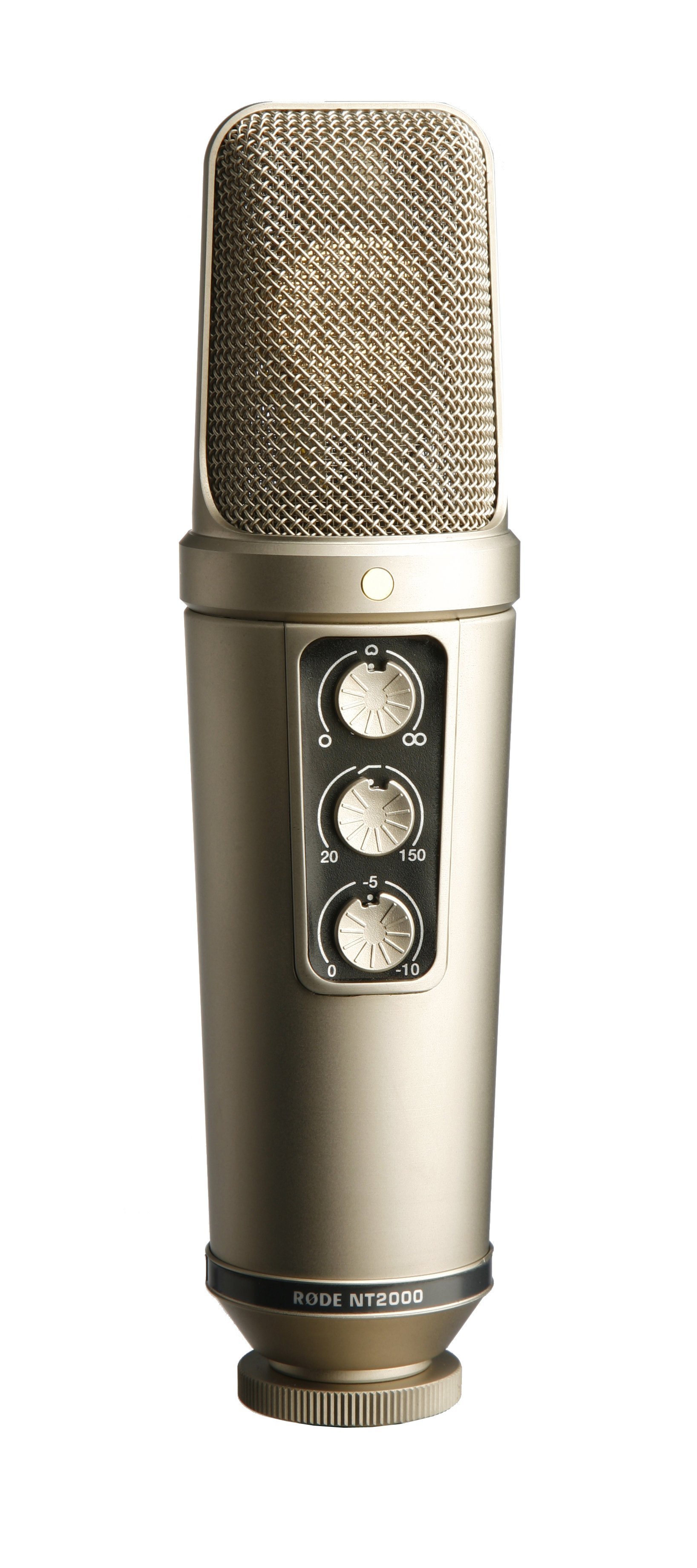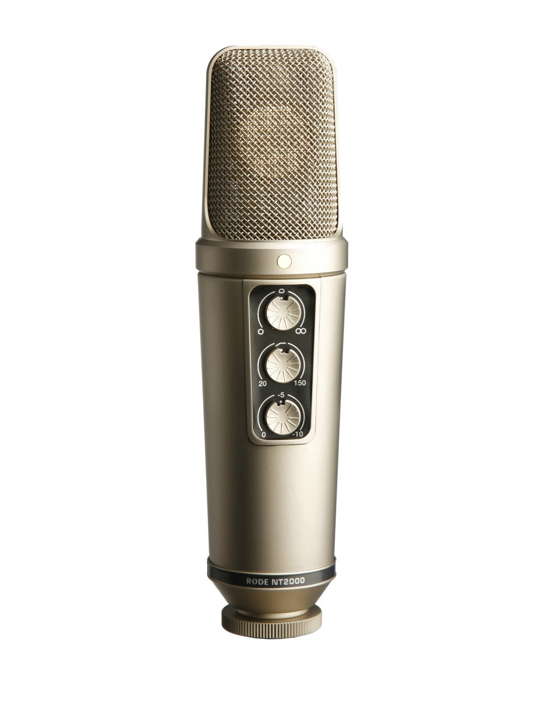 L'NT2000 est un microphone de studio de Rode. L'NT2000 est un microphone à condensateur à large diaphragme qui offre des pads pour l'atténuation sonore et différents motifs polaires. Ce microphone de Rode a un bruit de fond très faible de seulement 7dBA et est adapté à l'enregistrement de toute source sonore.