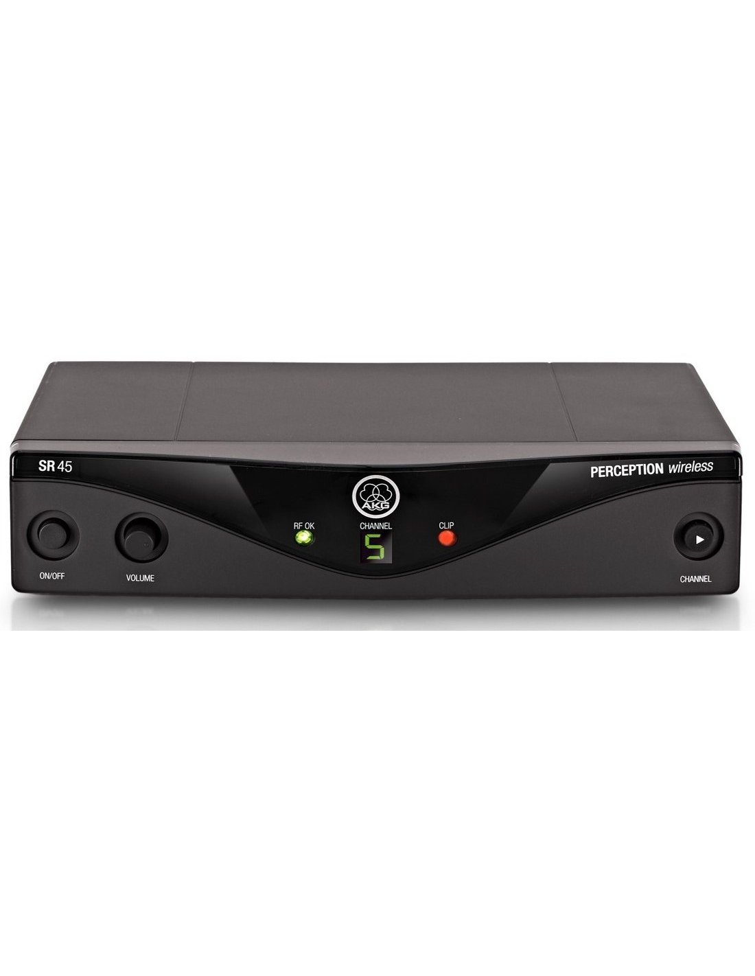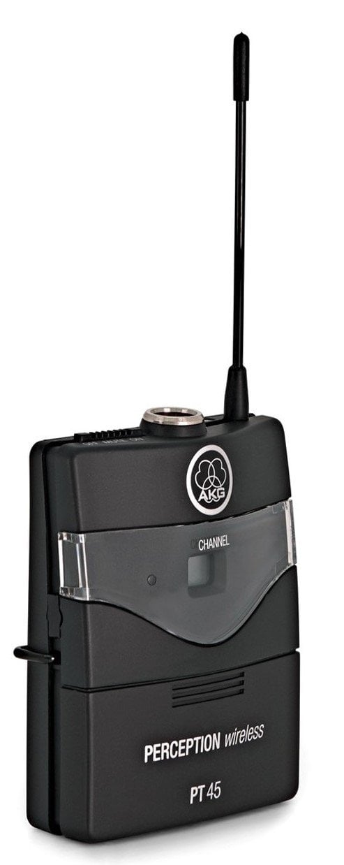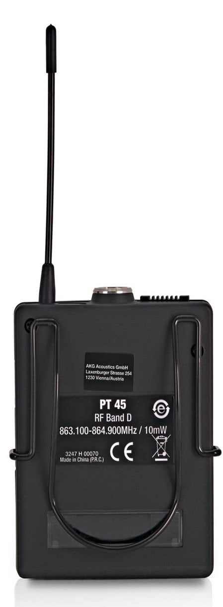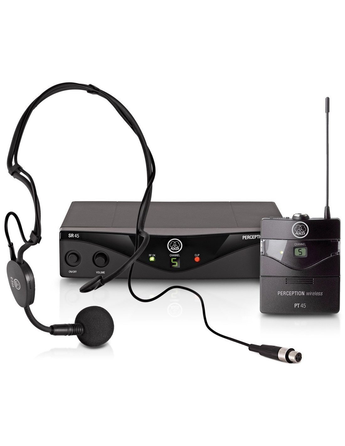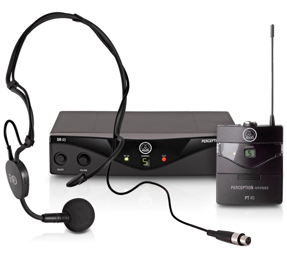 Le système AKG PW45 SPORT SET ISM est un système microphonique sans fil à arceau composé d'un récepteur fixe SR45, d'un émetteur bodypack PT45 et d'un microphone à arceau C544L avec capsule à condensateur. Le système est particulièrement adapté aux situations de mouvement et l'arceau est également équipé d'un support anti-choc et d'un bouclier anti-humidité.