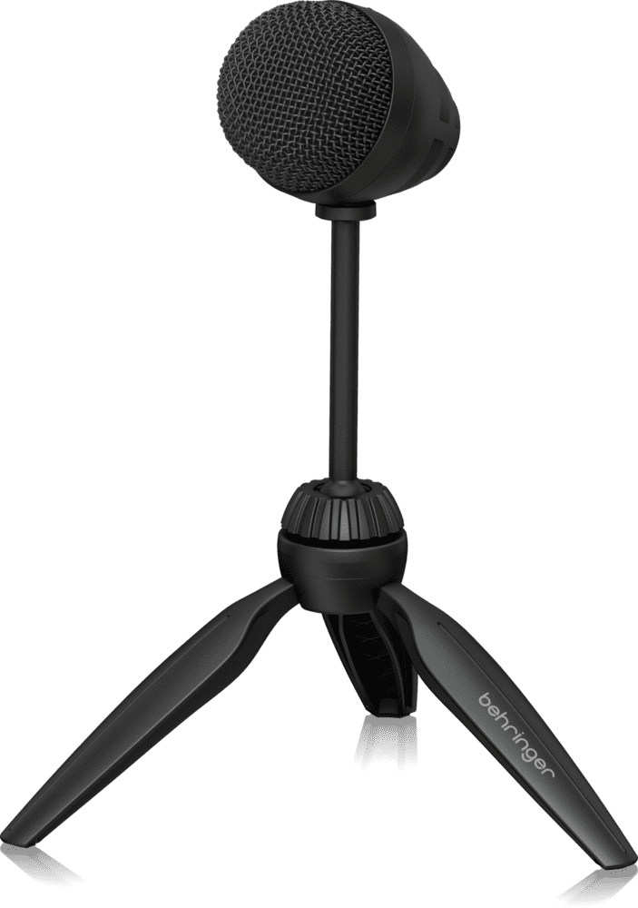 BEHRINGER BU5. Microphone USB à condensateur idéal pour Voip et conférences. Les caractéristiques techniques incluent un chipset intégré 32 bits haute résolution, une capsule intégrée avec annulation des bruits de fond, une fonctionnalité plug n play pour ordinateurs et dispositifs, une sortie pour écouteurs via jack 3,5 mm pour un monitoring à latence nulle. Inclut trépied, anti-vent en fourrure et câble USB 2m.