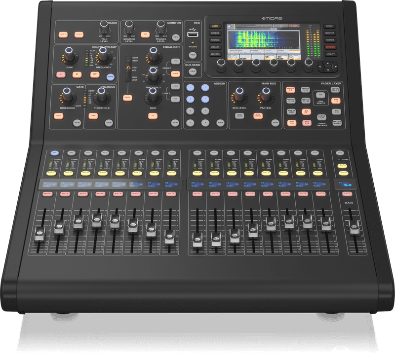 MIDAS M32R LIVE est une table de mixage numérique professionnelle pour des applications P.A avec 32 canaux d'entrée dont : 16 préamplificateurs micro Midas PRO avec contrôle de gain et alimentation fantôme individuelle pour chaque canal et 16 canaux de ligne supplémentaires pour connecter des instruments, des claviers ou d'autres sources audio. Les caractéristiques techniques incluent 64 canaux de traitement, 4 bandes d'égaliseur paramétrique sur chaque canal, compresseur/limiteur multibande sur chaque canal, gate/expanseur sur chaque canal, 8 moteurs FX intégrés avec réverbérations, délais, chorus, changement de hauteur et autres, 17 faders motorisés sensibles au toucher, écran LCD tactile couleur de 10" pour une navigation et un contrôle faciles de toutes les fonctions. Il présente également 29 sorties analogiques dont : 16 sorties master, 8 sorties auxiliaires, 4 sorties matrice et 1 sortie stéréo pour écouteurs, 16 sorties numériques AES/EBU, 2 ports Ethernet pour le contrôle à distance et la connexion à un ordinateur et 2 ports USB pour l'enregistrement et le chargement de presets, scènes et mises à jour du firmware.