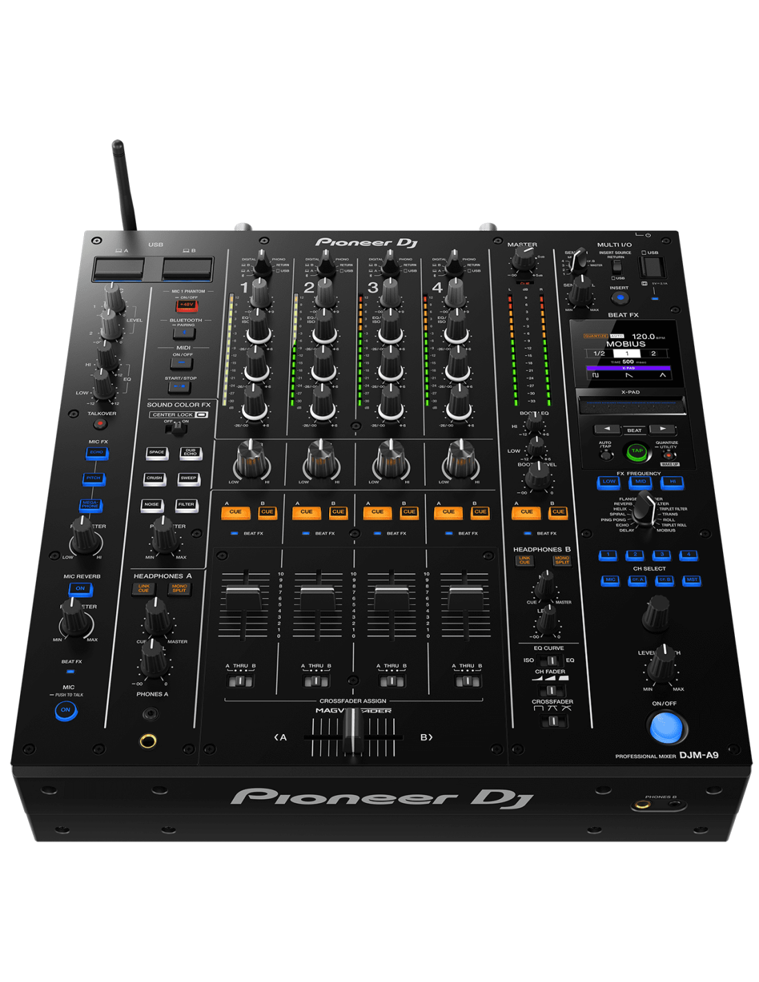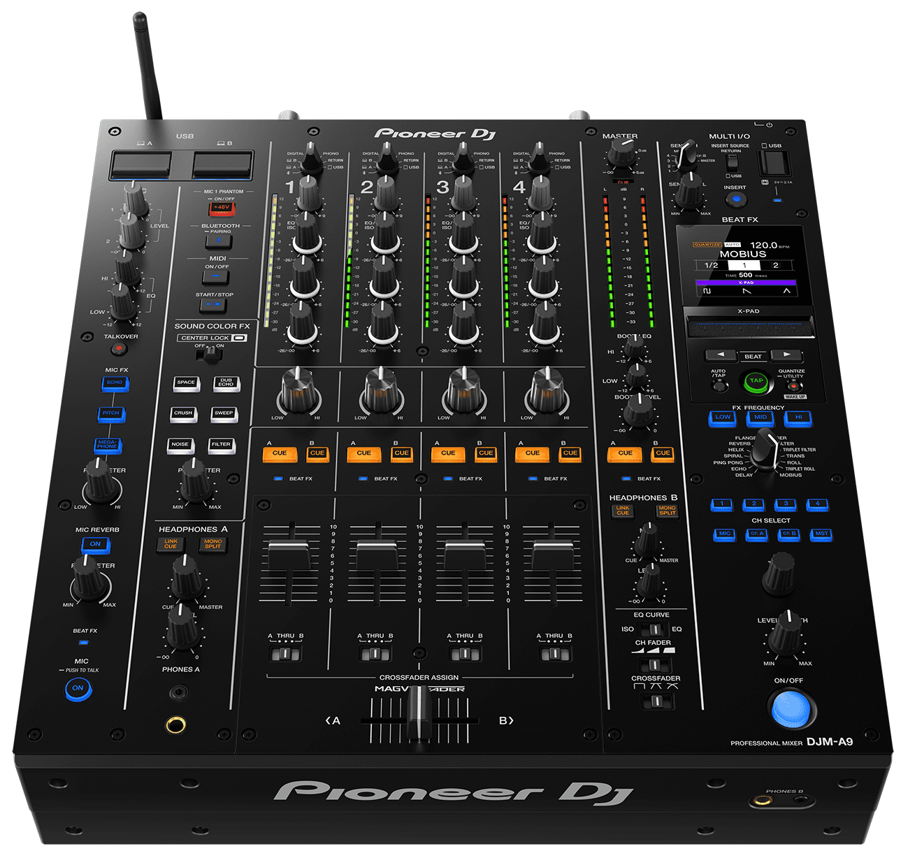 PIONEER DJ DJM-A9. Pioneer DJ annonce le lancement du nouveau mixeur DJ professionnel de nouvelle génération DJM-A9. L'unité à 4 canaux élève la barre pour les mixeurs standard de club, avec d'énormes mises à jour par rapport à son prédécesseur, le DJM-900NXS2, offrant une qualité sonore extraordinairement claire, une jouabilité et une connectivité améliorées, ainsi qu'une série de nouvelles fonctionnalités pour vous aider à porter vos performances à un niveau supérieur.