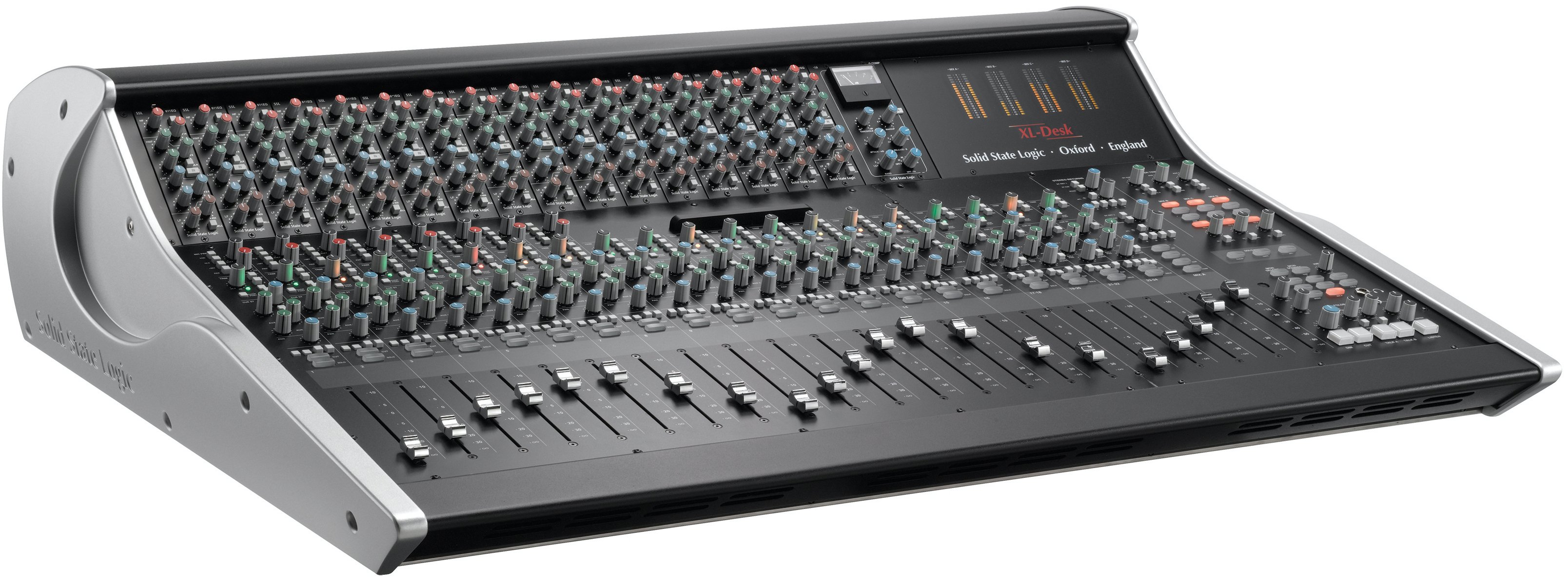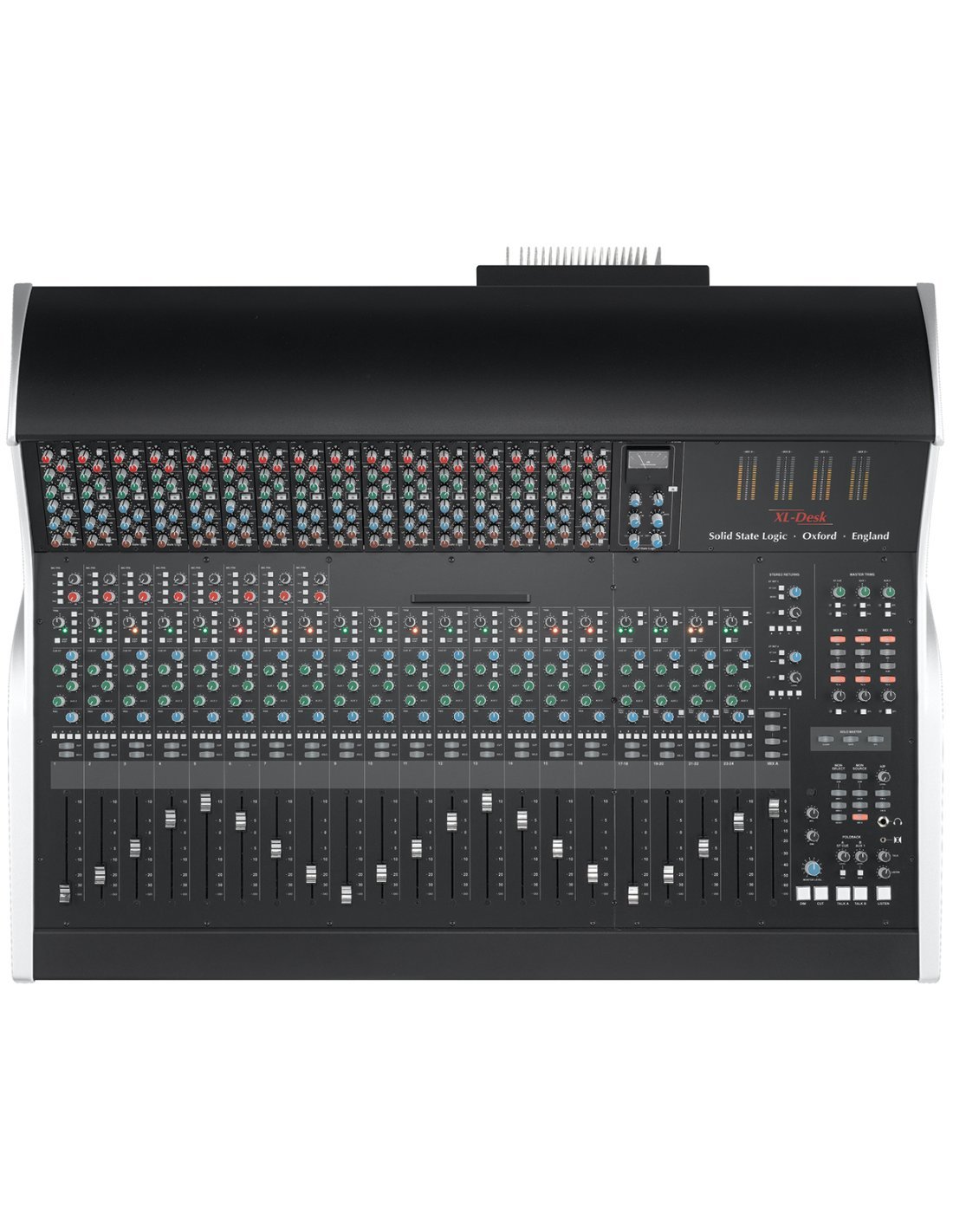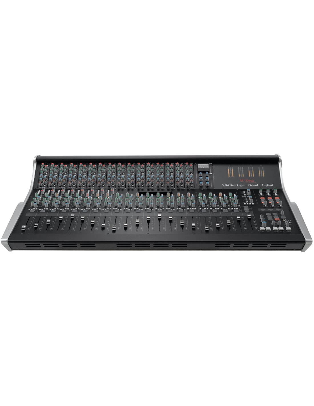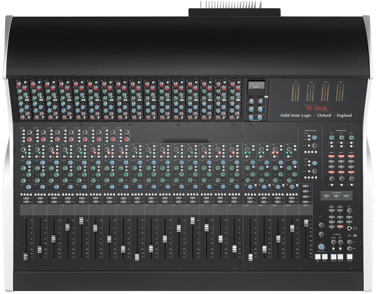 Mixeur série SuperAnalogue 40 Entrées - 16 emplacements vides SSL XL-Desk : une réinterprétation moderne de la console de studio analogique classique. XL-Desk est la réinterprétation moderne de la console de studio analogique classique. Conçu pour les studios d'enregistrement modernes basés sur DAW, mais destiné aux ingénieurs qui n'ont pas besoin ou ne souhaitent pas de contrôle direct sur l'ordinateur, il ne présente aucune fonction d'automatisation analogique, comme les autres produits SSL devenus désormais des standards pour l'intégration entre logiciel et matériel dans le studio hybride moderne. XL-Desk Channel Strip et Routage XL-Desk est à bien des égards une console analogique traditionnelle 24 sur 8 mais renferme un ensemble de fonctions extraordinaires. 20 channel strips : 16 mono avec double entrée (commutable entre entrée principale ou retour DAW) et 4 canaux stéréo. Les huit premiers canaux ont chacun un préamplificateur VHD. En haut se trouve un rack au format série 500 de 18 emplacements configurable à souhait avec n'importe quel module en standard 500 disponible sur le marché, des processeurs, aux préamplificateurs en passant par les EQ. XL-Desk est fourni de série avec le légendaire compresseur bus stéréo SSL dans les emplacements 17 et 18 (câblés directement sur le Mix A). Le rack dispose de sa propre alimentation avec des spécifications électriques de très haut niveau (et une puissance bien supérieure à tout alimentateur série 500 sur le marché !). Quatre bus principaux de mixage (A, B, C, D) avec B, C et D pouvant être assignés directement dans le Mix A. Tant les bus de sortie que les canaux individuels peuvent accéder au rack série 500 et disposent d'un point d'insertion séparé pour d'autres traitements via un matériel externe. Deux envois AUX mono et deux entrées de retour stéréo ; sortie directe sur chaque canal, les retours stéréo et le routage évolué entre les différents bus rendent l'enregistrement de stems individuels facile et pratique, en plus du mixage classique. Chaque canal a une section Bus Cue Stéréo (avec Pan et Volume) utilisée pour fournir par exemple une écoute stéréo séparée pour les musiciens en casque. Pendant la phase de mixage, les signaux provenant de la DAW (retour DAW) présents sur les canaux mono peuvent être dirigés vers le bus CUE ST puis additionnés au Mix A, jusqu'à obtenir une console de mixage avec 16 faders principaux + 16 entrées Cue ST + 4 canaux stéréo : c'est-à-dire qu'elle devient à tous égards un sommateur avec 40 canaux (en utilisant les retours stéréo et en insérant la fonction Sum, on peut atteindre 50 canaux en somme). La section Control Room prévoit 3 paires de moniteurs + Subwoofer avec gestion des basses assignable indépendamment, sortie casque, Foldback A et B avec 2 talkbacks individuels pour les mix en casque et une entrée Listen Mic avec le circuit de compression "légendaire", avec sa sortie directe. Caractéristiques principales : 20 + 1 fader, plus de 40 entrées des consoles SuperAnalogue ™ SSL 8 préamplificateurs microphoniques Variable Harmonic Drive (VHD) (identiques à ceux de la Duality !) 16 canaux mono avec double entrée (commutables entre entrée principale ou retour DAW) 4 canaux stéréo (commutables en mono pour le monitoring) Le légendaire compresseur bus stéréo, avec le nouveau filtre passe-haut sur le sidechain Rack avec 18 emplacements au format 500 intégré dans le châssis, accessible depuis les canaux ou les bus de mixage En plus des inserts pour les modules du rack 500, chaque canal mono dispose également d'un point d'insertion externe indépendant 4 bus stéréo chacun avec ses propres points d'insertion et l'accès au rack série 500 Un envoi auxiliaire stéréo et 2 mono. Deux retours stéréo dédiés Sorties directes sur chaque canal, retour stéréo et bus de mixage pour la "stampe" des stems Section de monitoring complète de toutes les fonctions de gestion des basses Foldback A et B avec talkbacks individuels pour mix casque Entrée Listen Mic intégrée avec le circuit de compression classique, avec sa propre sortie directe Mode solo AFL et Solo-In-Place, avec Solo Safe et Clear Solo Connexions sur D-Sub au panneau arrière pour entrées et sorties + prise iJack et casque sur le panneau avant PSU interne