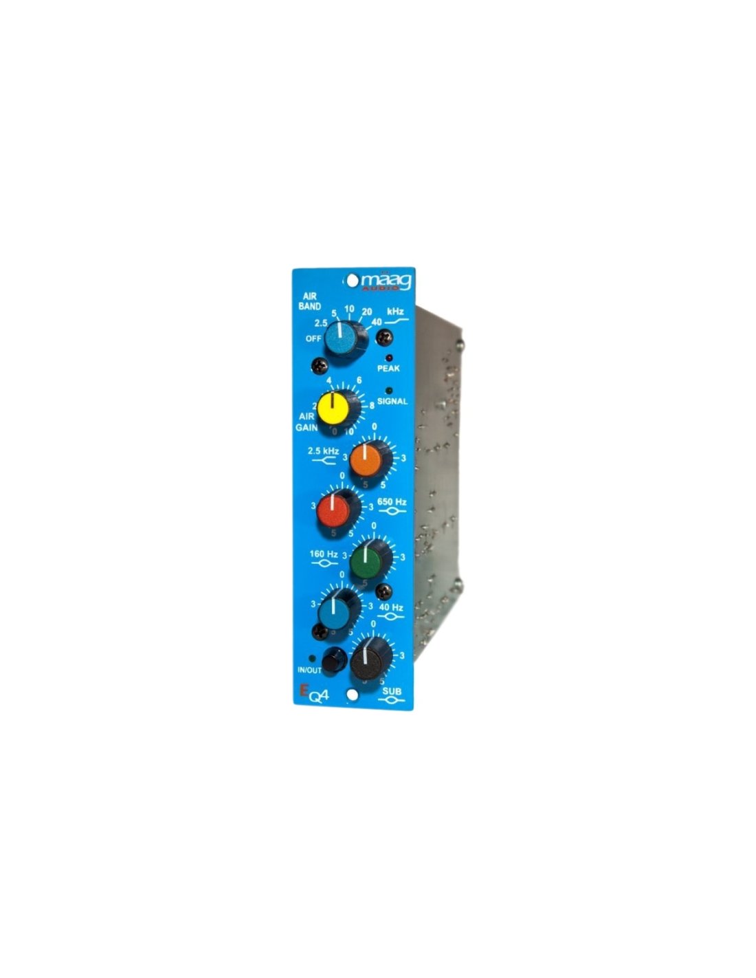 Le Maag EQ4 est un égaliseur à 6 bandes à 1 canal, avec AIR BAND (boost de plateau de 2,5 à 40 kHz). Le Maag EQ4 est au format API 500 et garantit une transparence sonore et une présence des fréquences aiguës, tout en maintenant un son naturel. Les ajustements de l'EQ sont obtenus avec le minimum de décalage de phase.