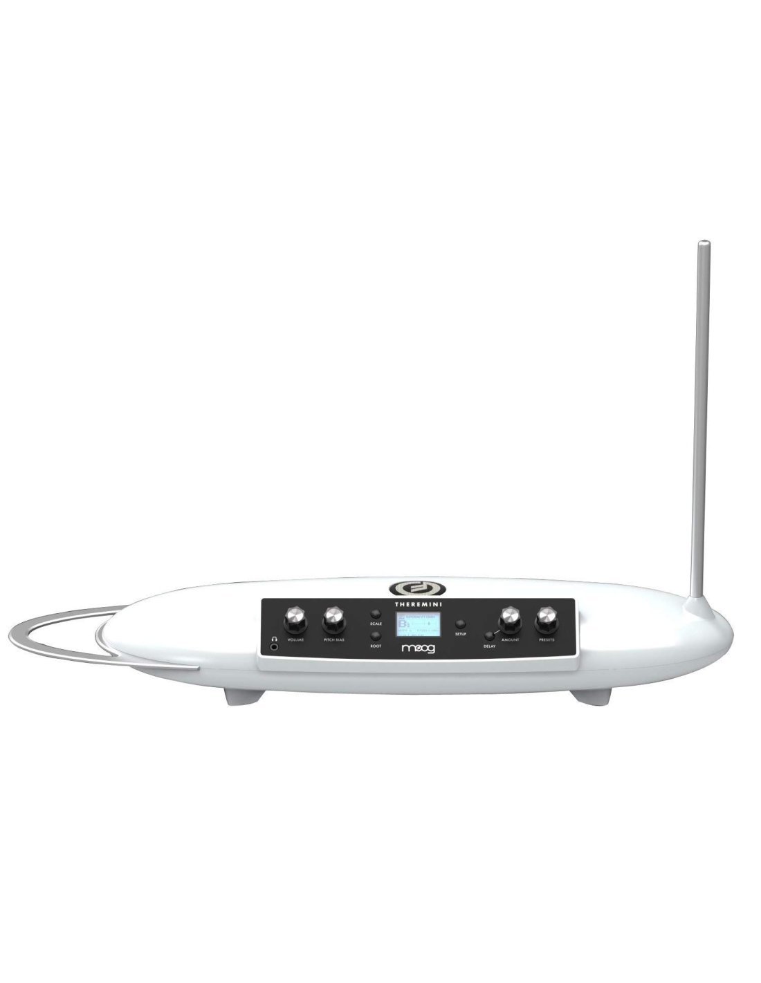 MOOG THEREMINI est un Theremin avec 32 sons en synthèse Wavetable, contrôle de l'intonation, possibilité de mémoriser des presets, Delay stéréo, haut-parleurs intégrés, antenne amovible, écran LCD de contrôle