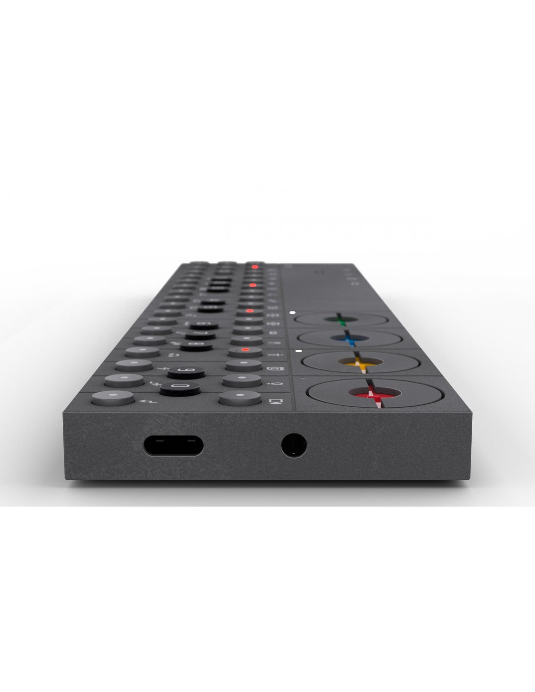 TEENAGE ENGINEERING OP-Z est un synthétiseur portable et séquenceur à 16 pistes avec technologie sans fil. Les caractéristiques techniques incluent des boutons de contrôle colorés, une interface utilisateur intuitive, la compatibilité avec des pistes audio en formats MIDI, CV et Trg Track, le support d'images graphiques 3D et de séquences de lumières DMX, 160 motifs programmables par l'utilisateur, équipé d'un DSP Analog Devices Blackfin 70X et d'un coprocesseur audio Cirrus Logic avec DAC 24 bits / 48 kHz, capteur de mouvement à 6 axes assignable à n'importe quel paramètre.
