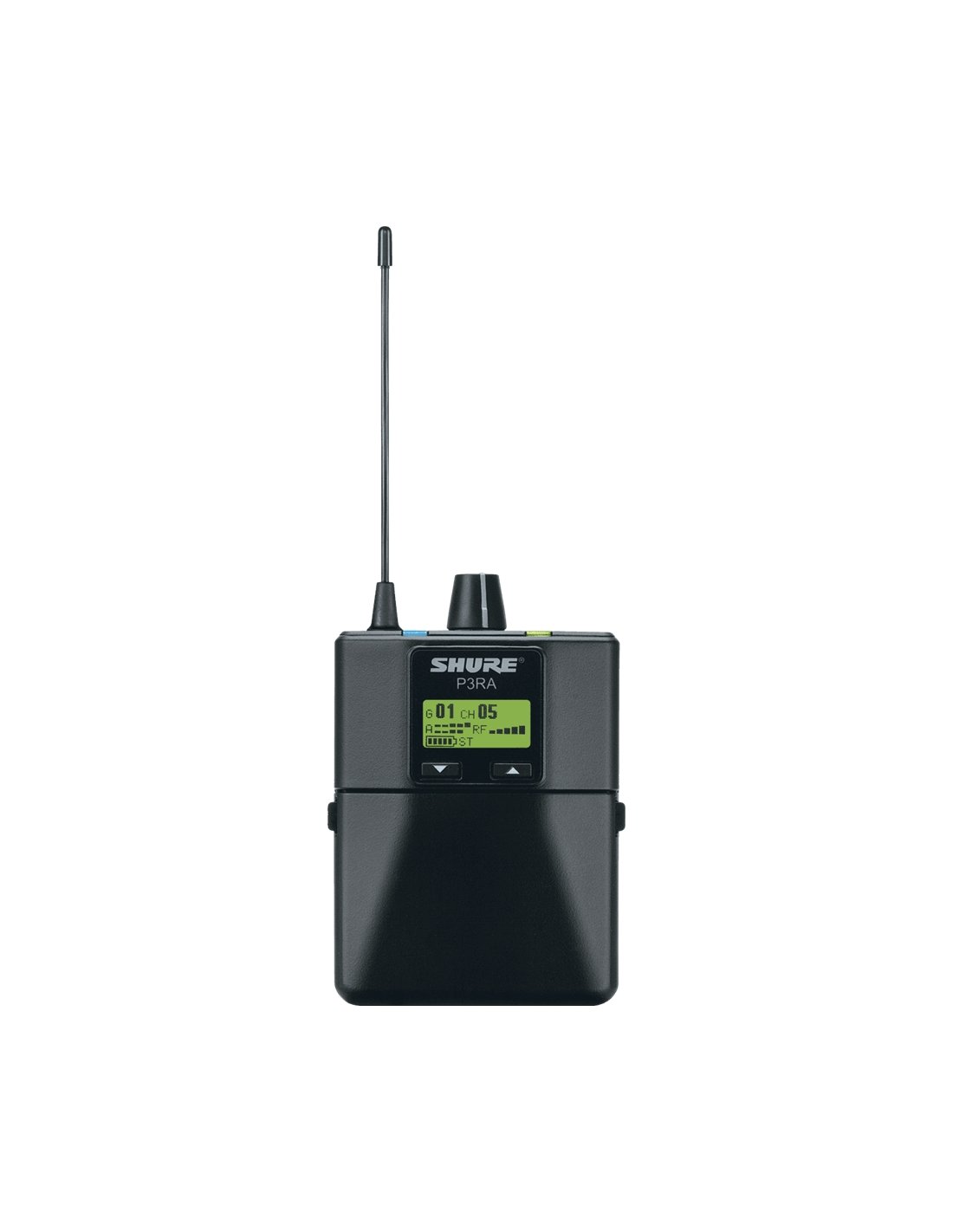 Le Shure P3RA est un récepteur bodypack stéréo compact à utiliser avec le Système de Monitoring Personnel In-Ear PSM300. Grâce au traitement numérique de l'audio à 24 bits et à une transmission fiable, le bodypack P3RA permet la liberté de monitoring stéréo à chaque point de la scène. Il est possible de régler le volume et d'utiliser le mode stéréo ou MixMode pour créer un mix personnel à partir de deux canaux audio. L'égalisation et un limiteur, accessibles via les menus affichés sur l'écran LCD à fort contraste, permettent de personnaliser davantage le son. La structure compacte et robuste en aluminium assure une longue durée de vie ; elle se fixe facilement à la ceinture ou à la sangle de la guitare. Deux piles AA standard permettent jusqu'à 7 heures de fonctionnement continu. La batterie rechargeable SB900 (vendue séparément) prolonge l'autonomie et peut être rechargée directement à l'intérieur de l'unité. Inclut un sac avec fermeture éclair et 2 piles AA. Plage de fréquence sans fil L19 : de 630 à 654 MHz