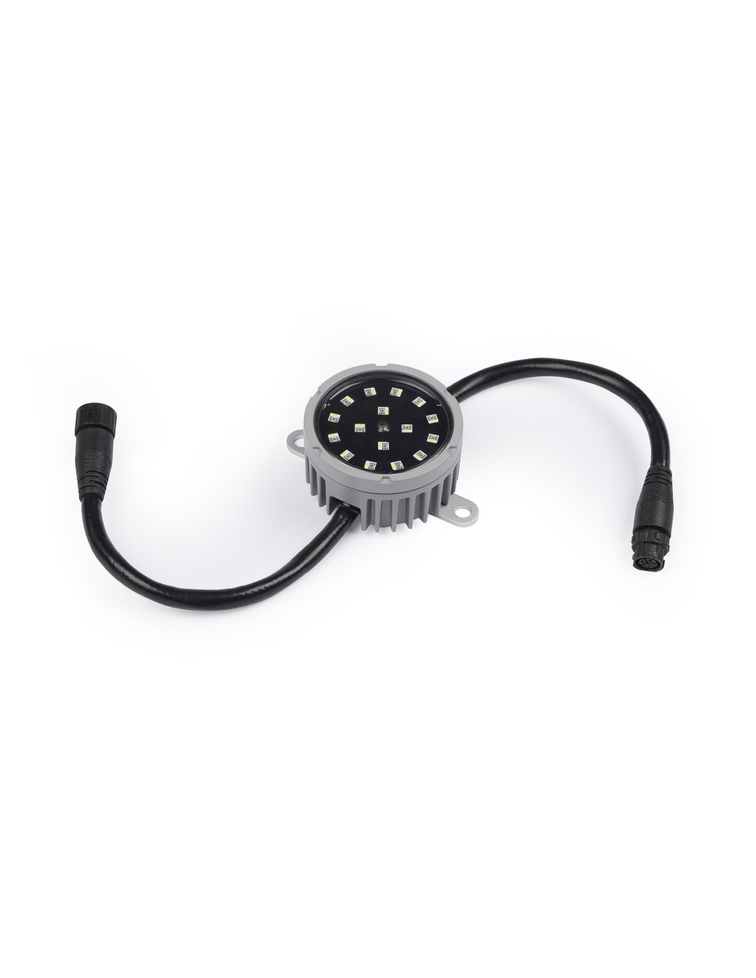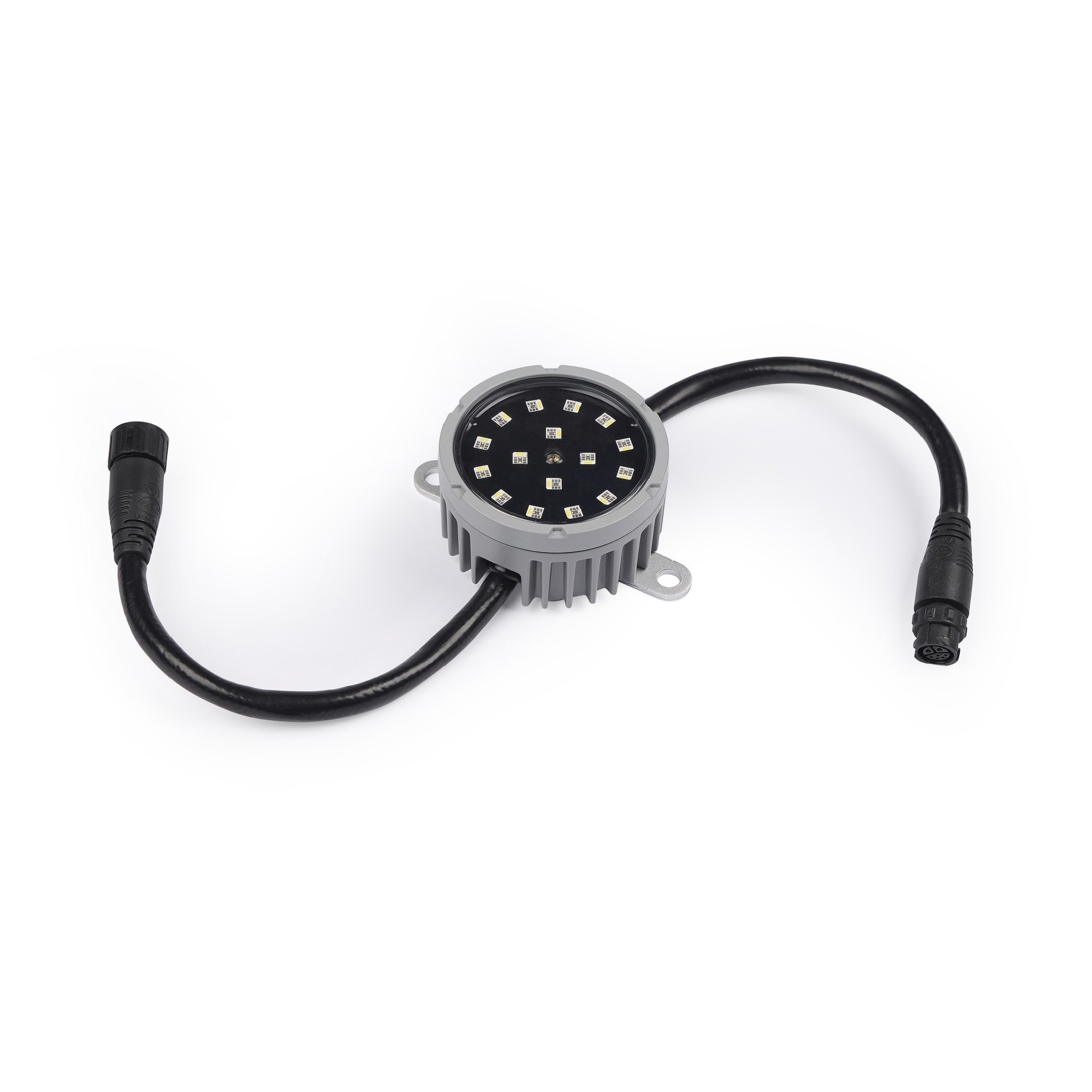 Dot a LED ad alta luminosità da esterno (luce bianca fredda, diffusore trasparente). Apertura fascio 150°. 16 RGBW LEDs. CTC 2.000-12.000K. DMX, RDM, ArtNet, sACN, P3. 6/12/4/3/48 canali. 395g. IP67.