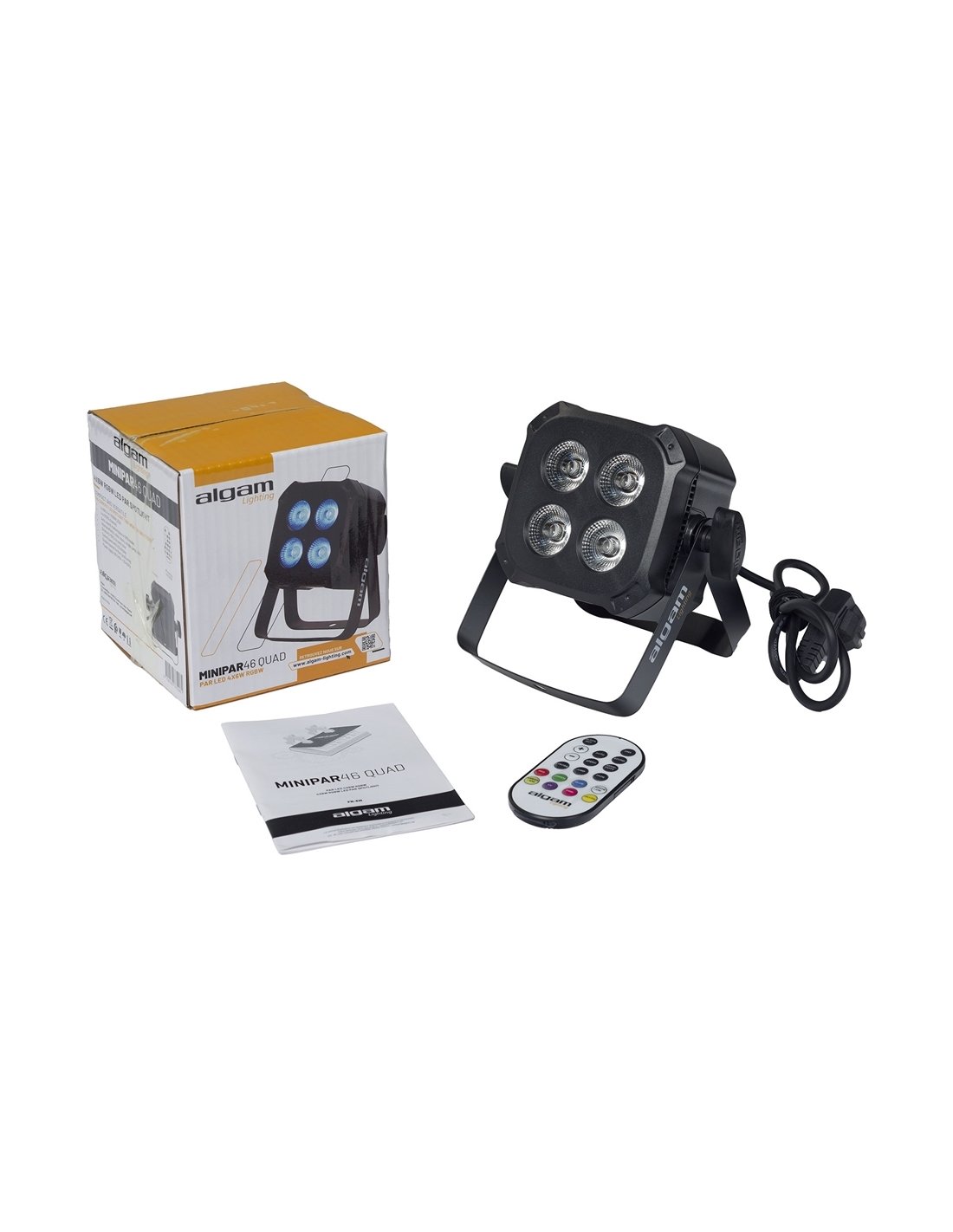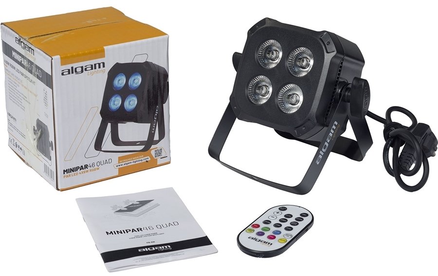 ALGAM LIGHTING MINI PAR 46 QUAD est un mini Par Led RGB avec une riche palette de couleurs et des modes d'utilisation sélectionnables. Les caractéristiques techniques incluent, 4 LED RGBW 4 en 1 de 6 W, modes Auto, Musical et DMX, effets intégrés : couleurs statiques, mélanges de couleurs, saut de couleur, saut de couleur avec dégradé, stroboscope, canaux DMX 4/8, affichage numérique avec 4 boutons de contrôle, In/Out DMX via connecteurs XLR 3 broches. Inclut câble d'alimentation, bande Velcro et télécommande IR