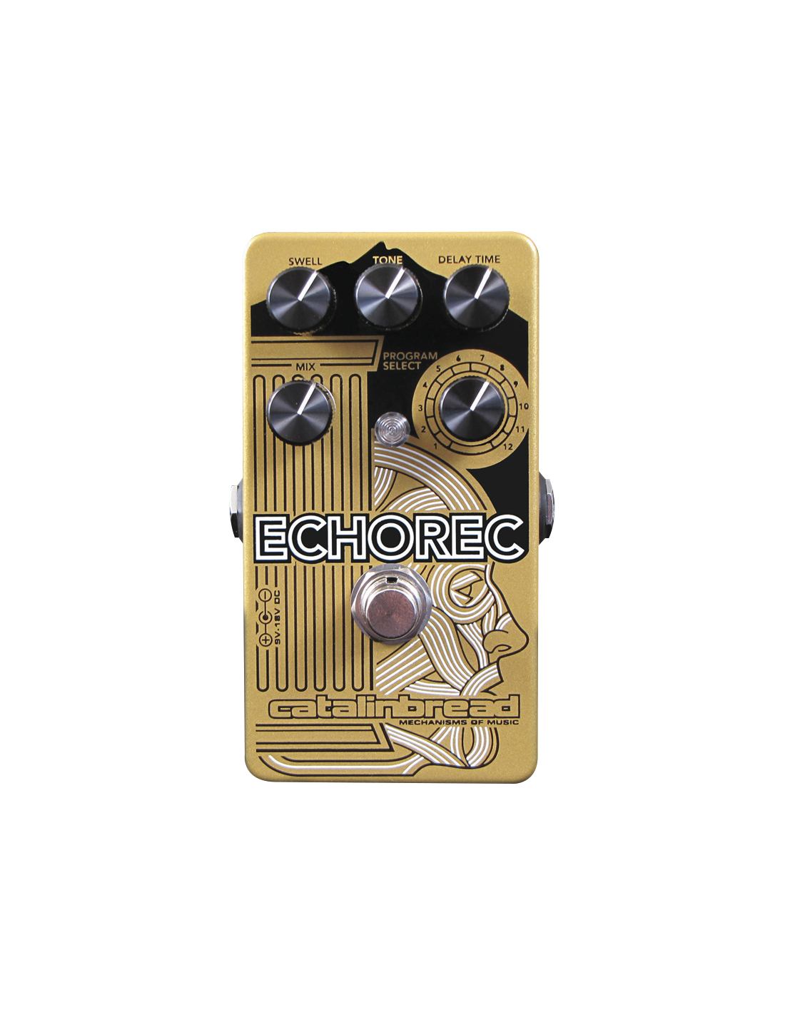 L'Echorec est un effet de retard à bande pour guitare et basse de Catalinbread, inspiré du célèbre Binson Echorec. Il est doté d'un temps de retard étendu à 1000 ms, de 4 boutons pour régler le feedback, le filtre, le temps, le mélange humide/sec et d'un contrôle pour choisir parmi 12 combinaisons différentes des têtes.