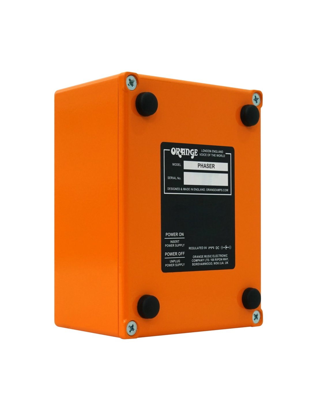 Esthétique fidèle au classique Orange “Phazer” des années 70. L'Orange Phaser a littéralement une seule fonction, avec un bouton. Une seule valeur réglable : Vitesse. Faible bruit, grâce au buffer d'entrée JFET. True bypass. Boîtier en aluminium. Dimensions : 9.2 x 10.2 x 8.4. Poids : 388g.