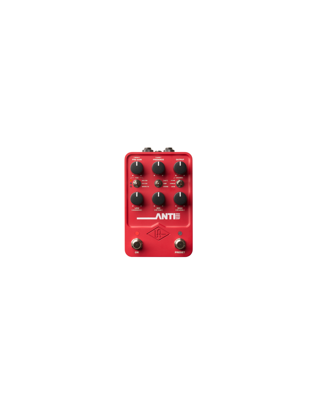 Pédale pour l'émulation d'un amplificateur métal connu Le pédale UAFX ANTI 1992 High Gain Amp vous permet d'obtenir directement sur votre pedalboard les sons dévastateurs de Slipknot, In Flames, Machine Head et d'innombrables groupes de métal scandinaves.*Avec ANTI, vous obtenez le son agressif de l'historique amplificateur à lampes de 120 watts qui a donné naissance aux tonalités de guitare “scooped”, combiné avec des cabinets parfaitement microphonés pour déclencher des riffs destructeurs, des solos déchirants et des sons clairs cristallins.*L'utilisation des noms des artistes ne constitue pas un endorsement officiel du UAFX ANTI 1992 High Gain Amp.Déchaînez des tonalités de guitare bestialesDans le détail, le 1992 High Gain Amp capture le son de l'amplificateur de 120 watts qui a donné naissance à des sous-genres célèbres du métal dans les années 90. Du thrash et death metal au grunge, black metal et au-delà, ANTI offre les riches tonalités “scooped” qui ont caractérisé le son de groupes iconiques pendant des décennies.Connectez et obtenez des sons prêts pour l'albumLe noise gate intégré d'ANTI maintient le signal propre même à des niveaux de gain extrêmement élevés. Son overdrive de style TS ajoute une saturation classique pour les fréquences moyennes, parfaite pour un son défini et articulé. Vous pourrez ainsi obtenir des sons de guitare prêts pour l'album directement depuis la pédale.Explorez des combinaisons de microphone et d'enceinte célèbresLes six combinaisons de microphone et d'enceinte modélisées à la perfection évoquent des sons légendaires utilisés dans des décennies d'enregistrements métal célèbres. Que vous recherchiez la brutalité cristalline du death metal scandinave ou le crunch épais et saturé du thrash américain, ANTI met à votre disposition une palette de tonalités féroces.UK V30 : cab 4x12 Marshall avec V30CA V30 : cab 4x12 Oversized avec V30White 75 : cab 4x12 Marshall avec Celestion 753 cab bonus : 2x12 D65, 4x12 Celestion 80, 4x12 Brown**Disponible avec l'application mobile UAFX.Personnalisez le son avec l'application UAFXAvec l'application mobile UAFX, vous pouvez rappeler des presets conçus par les guitaristes de Slipknot, Arch Enemy, The Black Dahlia Murder et d'autres, obtenant un accès immédiat aux réglages utilisés par les professionnels sur leurs amplificateurs. De plus, l'application débloque une personnalisation approfondie pour votre pédale, vous permettant de modifier les contrôles cachés, de sauvegarder les réglages de boost et de noise gate et même de régler le bias des lampes de sortie.Caractéristiques principalesUtilisez l’amplificateur de 120 watts des années 90 qui a défini de nouveaux genres de métal moderne.Le puissant moteur dual-engine de l’UAFX offre l'émulation la plus authentique de cet amplificateur jamais intégrée dans un stompbox.Obtenez des sons prêts pour l'album avec noise gate intégré, overdrive de style TS et boost.Expérimentez le révolutionnaire Dynamic Room Modeling dérivé de l’OX Amp Top Box de Universal Audio.Explorez six combinaisons classiques de microphone/enceinte utilisées dans des décennies de disques métal et hard rock iconiques.Jouez avec des presets conçus par les guitaristes de Slipknot, Arch Enemy et The Black Dahlia Murder ; ou personnalisez et sauvegardez vos tonalités dans l'application mobile UAFX.SpécificationsExigences d'alimentation : 9VDC isolé, centre-négatif, minimum 400 mA (vendu séparément)Entrées : 2 x ¼” TS (entrée droite pour connexions stéréo et mode à 4 câbles)Sorties : 2 x ¼” TS (sortie droite pour connexions stéréo et mode à 4 câbles)USB Type-C pour mises à jour via ordinateurHauteur : 6,5 cmLargeur : 9,2 cmProfondeur : 14,1 cmPoids : 0,567 kg