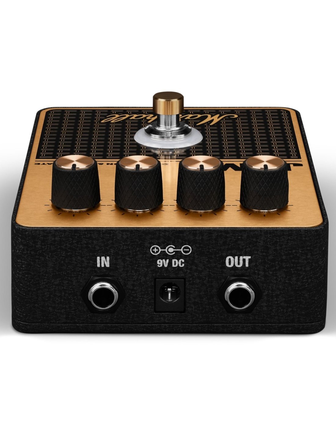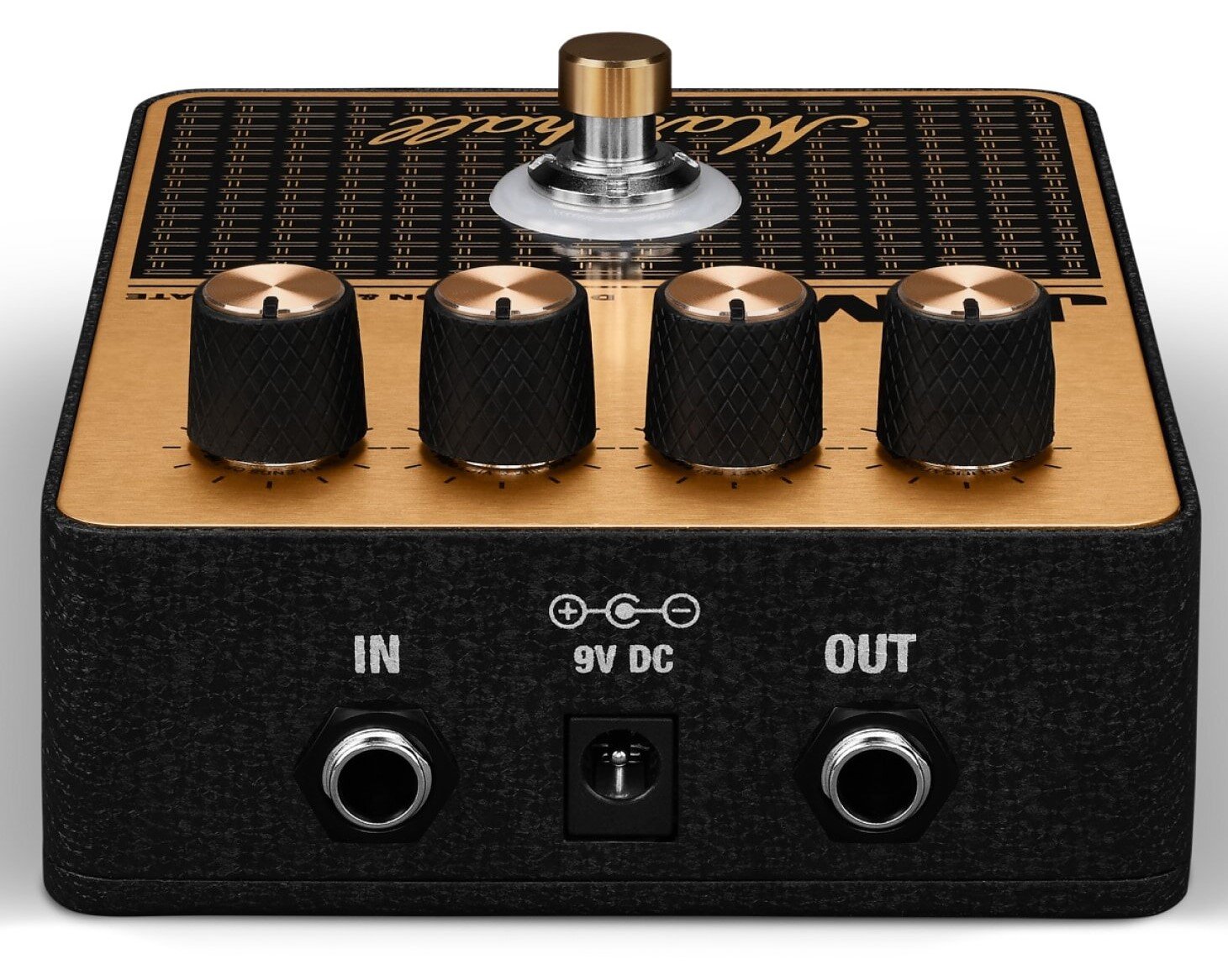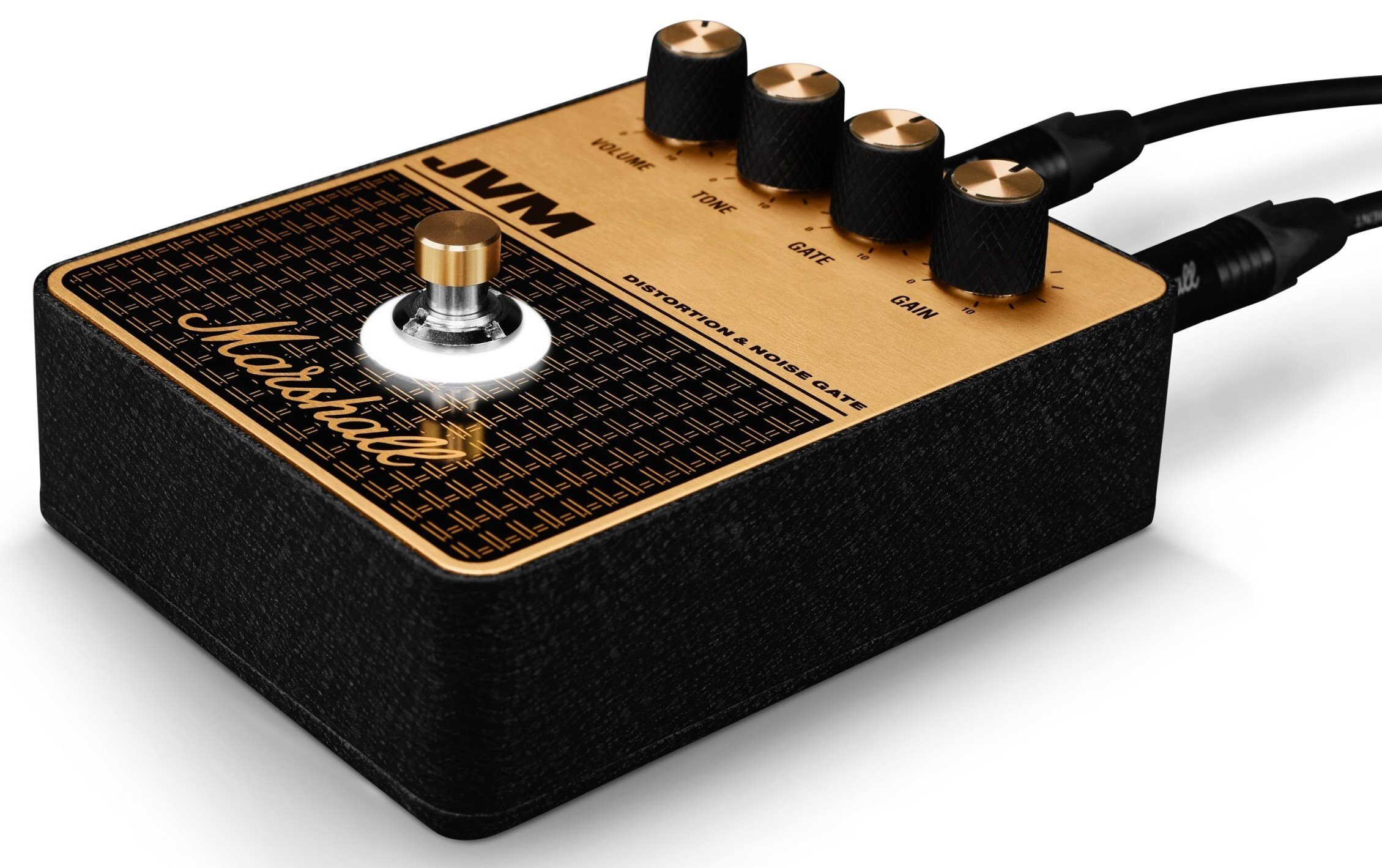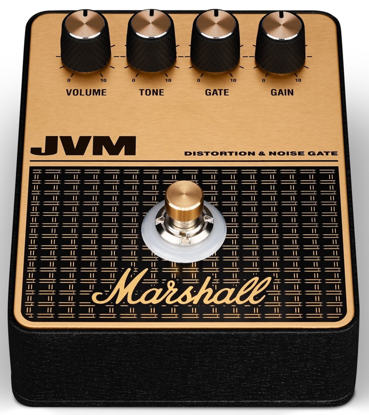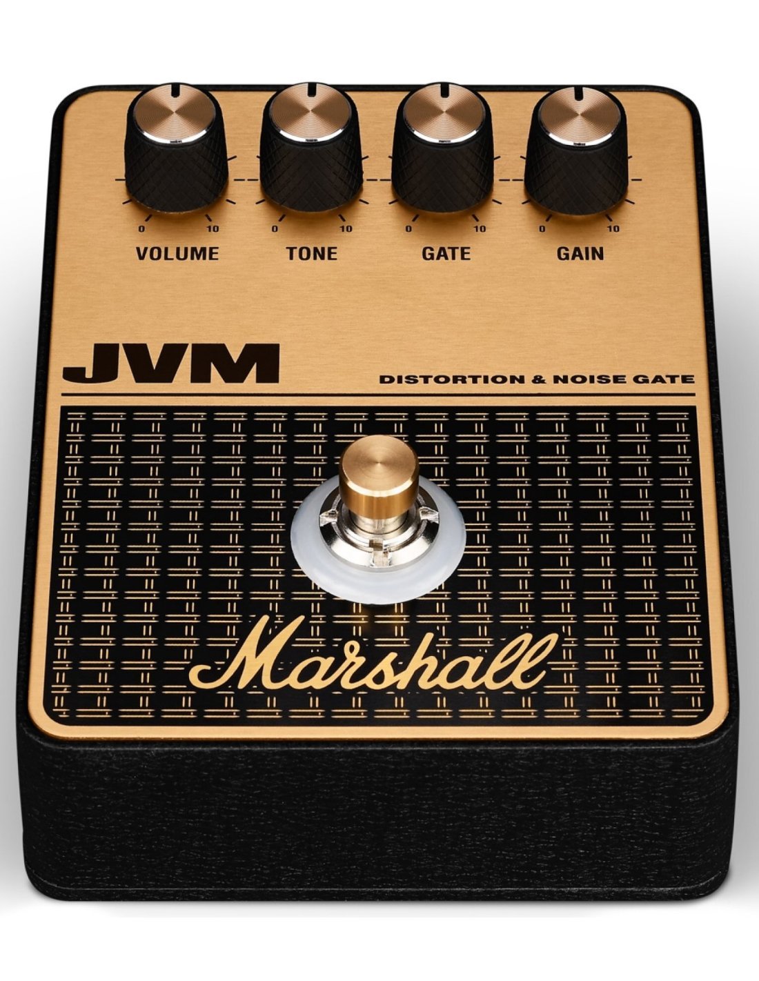 MARSHALL JVM est une pédale qui émule les sonorités Overdrive de l'amplificateur Marshall JVM, avec des contrôles pour Volume, Tonalité, Gate et Gain. True Bypass. Fonctionne avec une batterie pendant 30 heures consécutives ou avec un adaptateur externe 9V CC (non inclus)