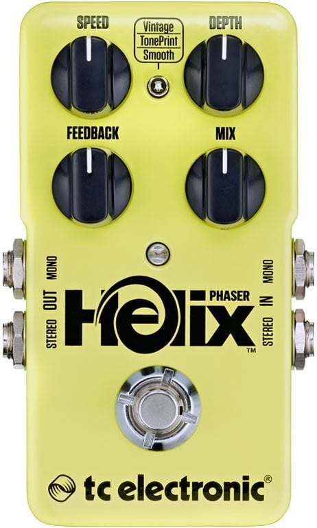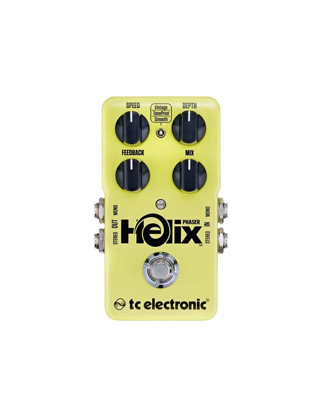 Pédale pour Guitare TC Electronic Helix Phaser. Le TC Electronic Helix Phaser est un phaser stéréo à pédale pour guitare avec true bypass. Il est équipé des contrôles Speed, Depth, Feedback, Mix et d'un mini switch à 3 positions pour sélectionner les modes Vintage/TonePrint/Smooth. Grâce à la technologie TonePrint, il est possible de télécharger gratuitement à l'intérieur de la pédale de nouvelles configurations conçues par les programmeurs TC et par des musiciens de renommée mondiale ou d'en créer de nouvelles via l'application gratuite TonePrint Editor.