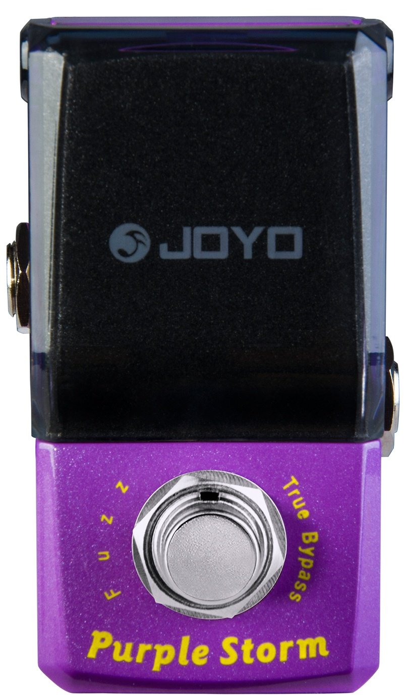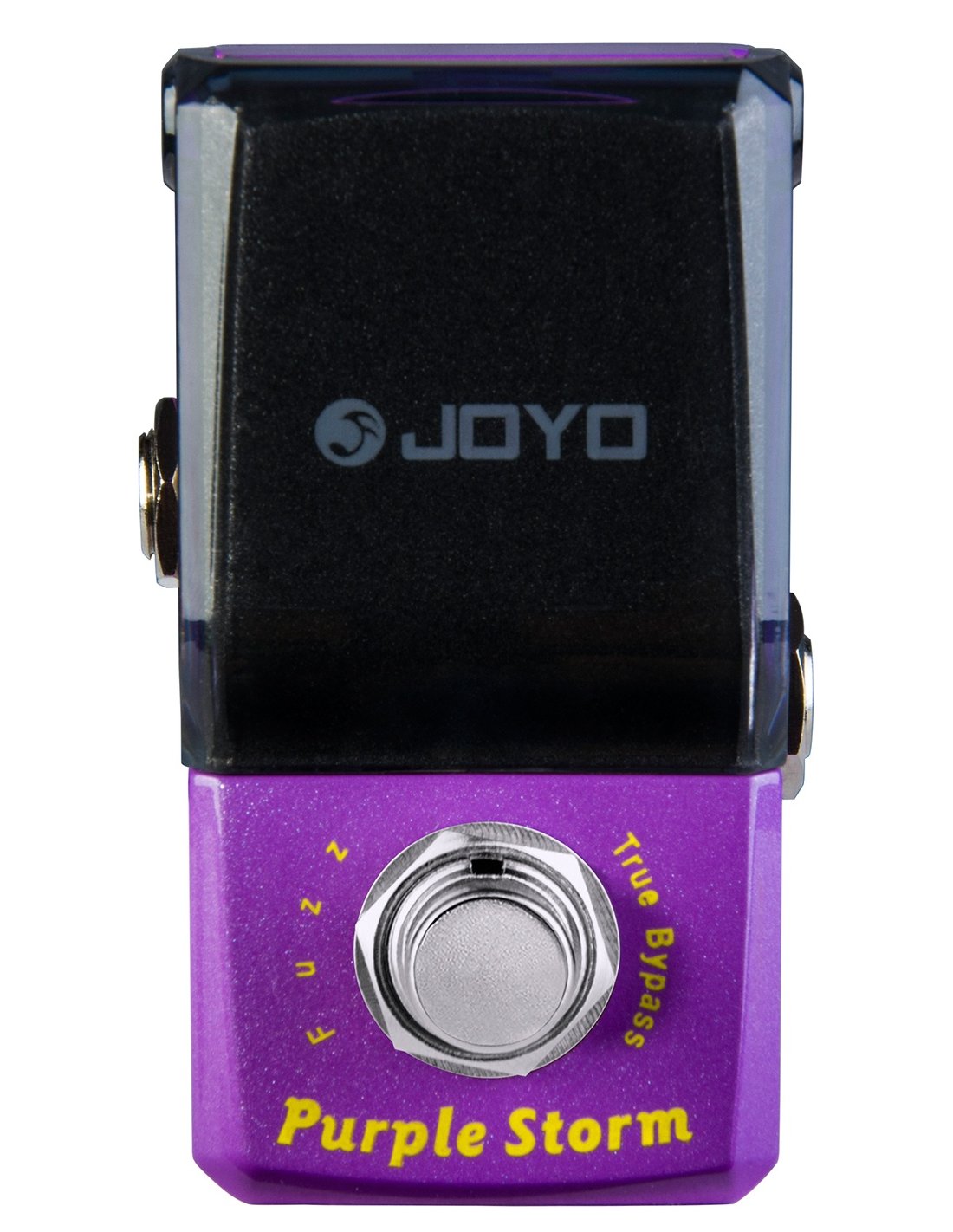 Pédale pour Guitare Joyo JF320 Purple Storm Ironman Series. La Joyo JF320 Purple Storm Ironman Series est une pédale fuzz pour guitare basée sur un circuit mosfet, avec un true bypass au format Mini. Elle est équipée des contrôles Bias, Fuzz, Volume et d'un couvercle de protection des boutons pour éviter les modifications accidentelles des réglages.