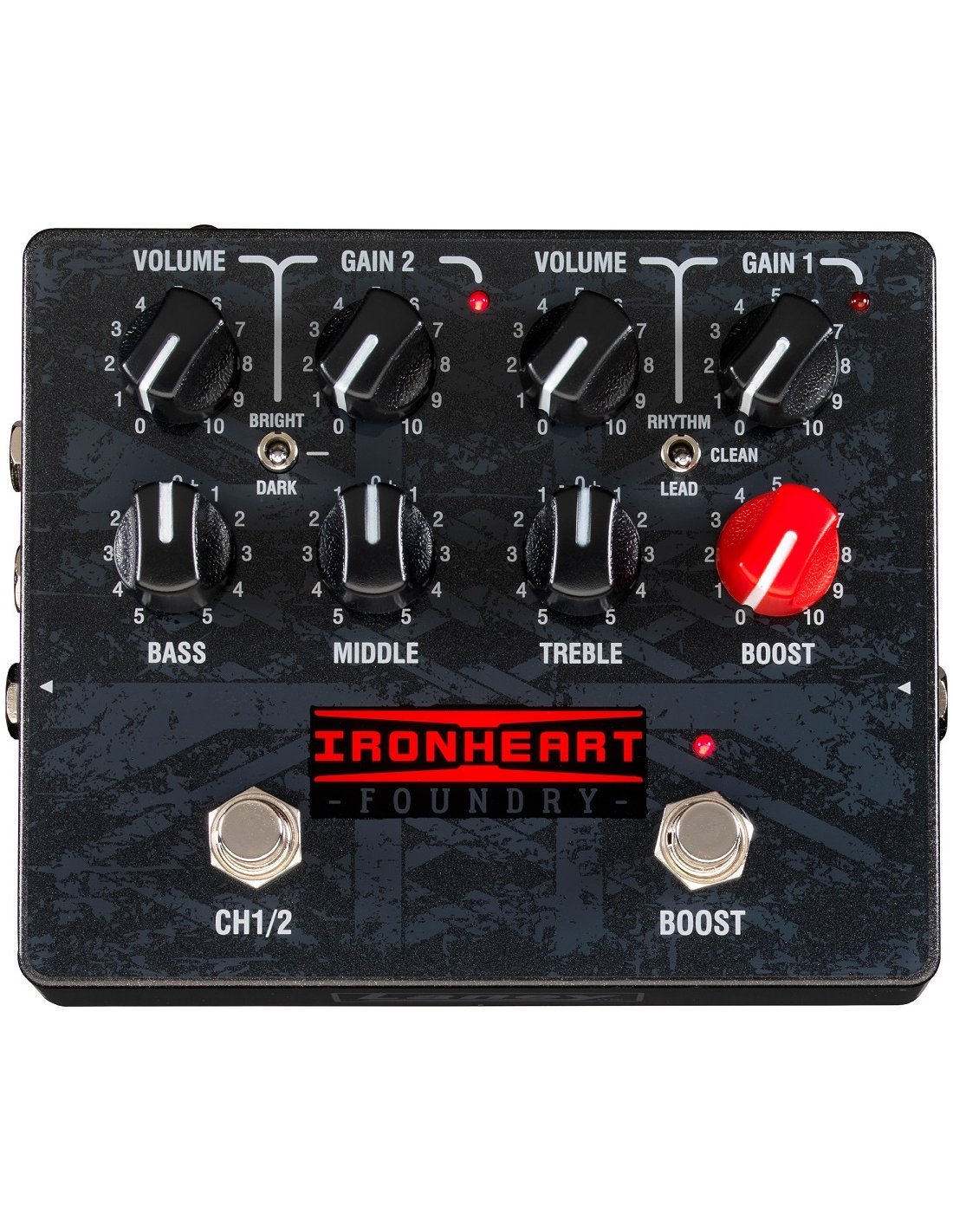 60W RMS sur 8Ω (minimum) - Deux canaux sélectionnables via footswitch - Pré-boost activable via footswitch - Contrôles indépendants de Volume et Gain par canal - Égaliseur à trois bandes commun - Sélecteur CLEAN/RHYTHM/LEAD pour CH1 - Sélecteur BRIGHT/DARK pour CH2 - Boucle d'effets ''Transformer Isolated'' - Entrée AUX - Sortie casque - Sortie XLR avec émulation de haut-parleur activable - Dimensions cm 62x151x124 - Poids : 1,05Kg - Alimentation dédiée incluse