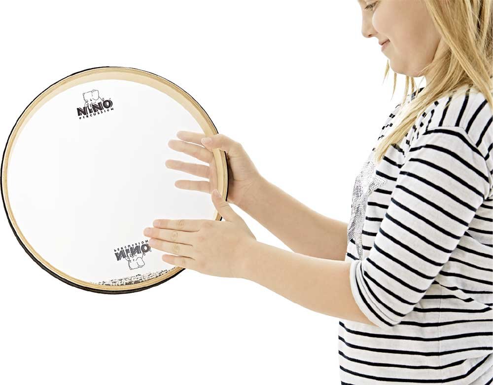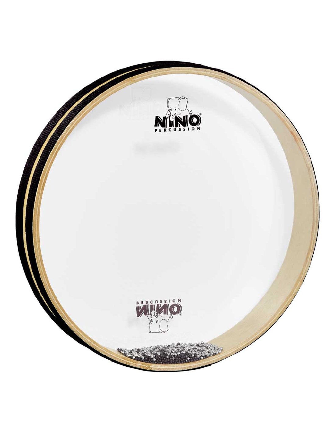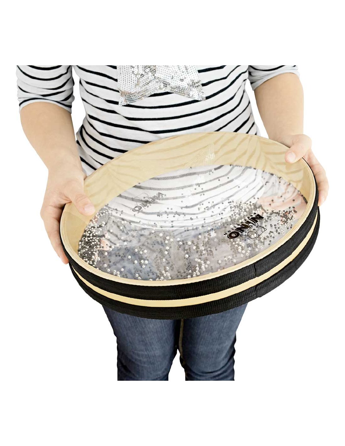 Le tambour océanique Nino de 12’’ possède des centaines de petites billes en métal enfermées entre deux membranes en cuir synthétique transparent. En déplaçant le tambour horizontalement et en le faisant tourner doucement, on recrée le son des vagues de l'océan.