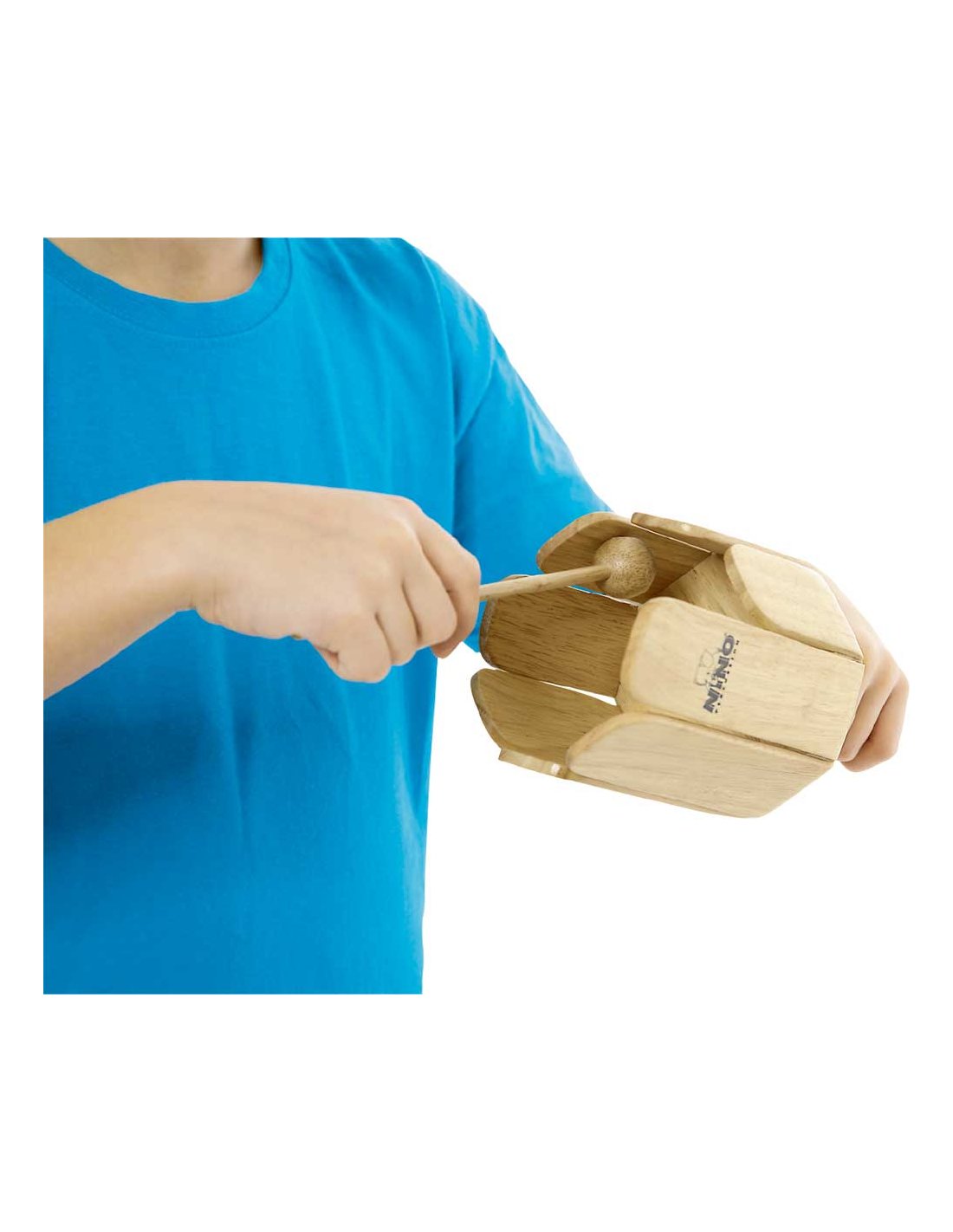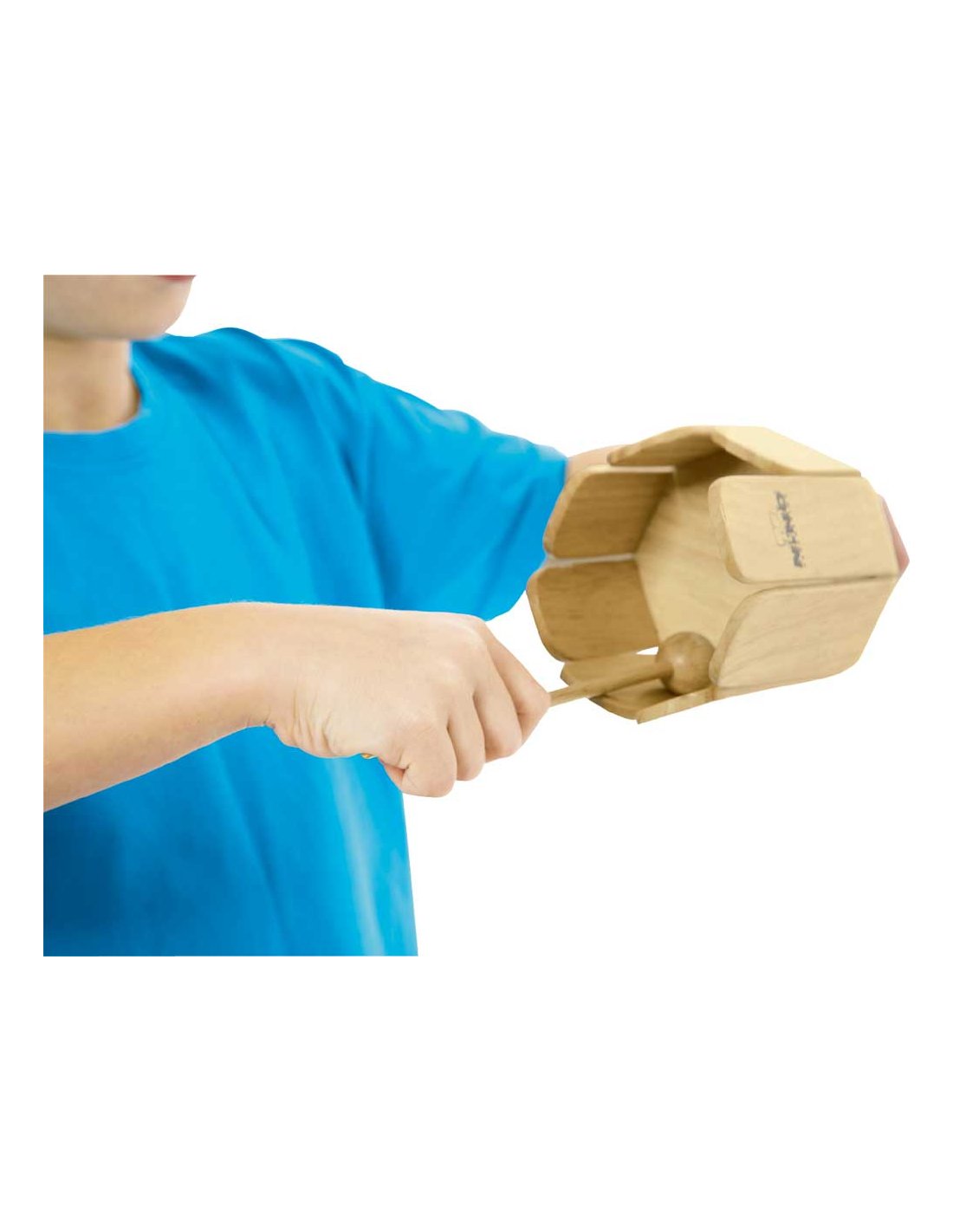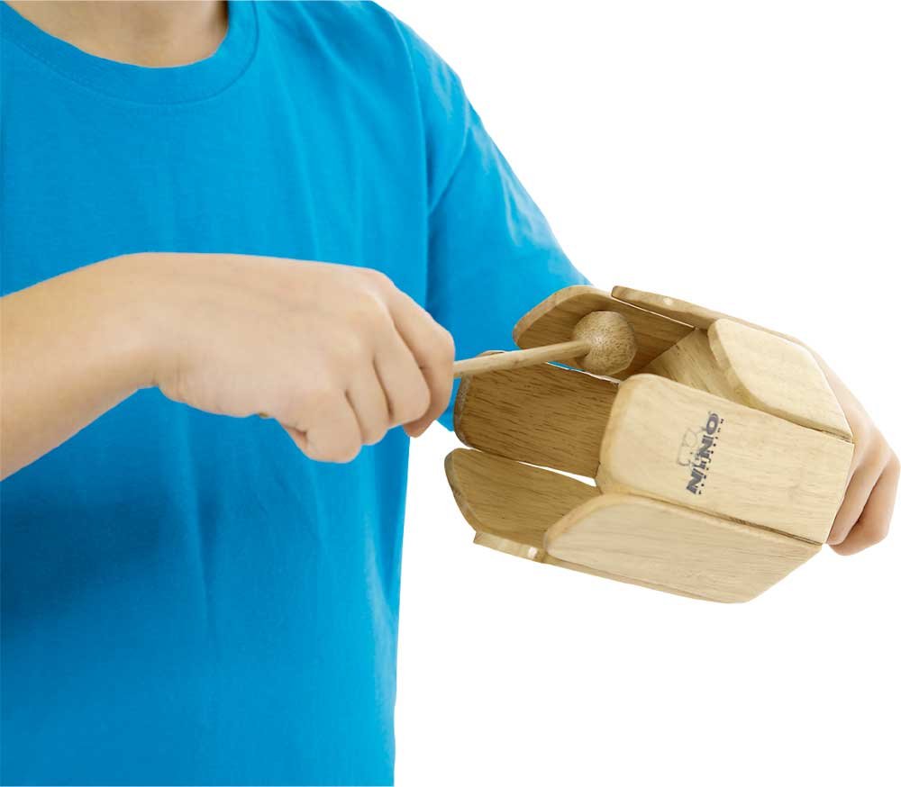 Les huit barres en bois produisent des tonalités différentes si elles sont frappées séparément, comme dans un xylophone. Il est possible de reproduire une échelle en faisant tourner le maillet fourni à l'intérieur de l'instrument.