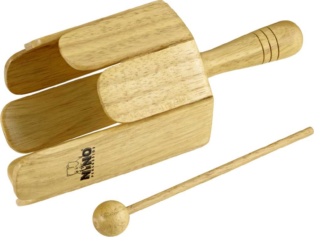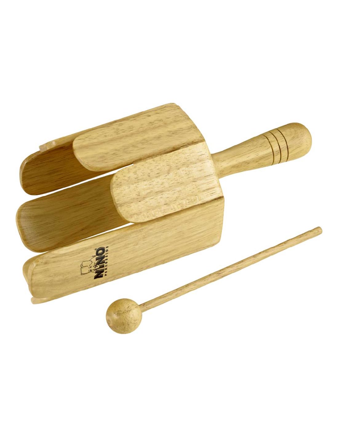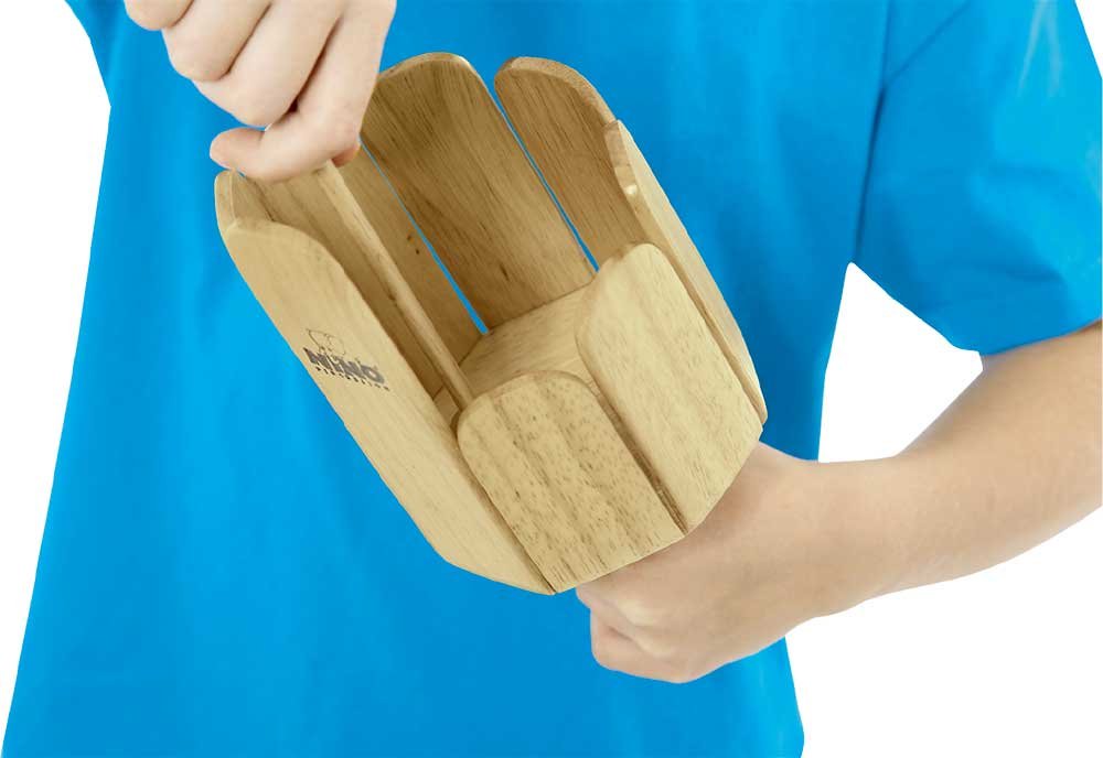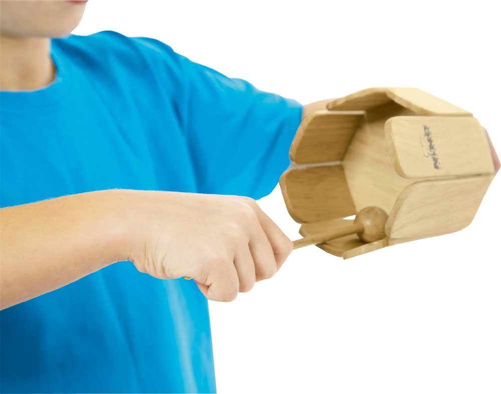 Les huit barres en bois produisent des tonalités différentes si elles sont frappées séparément, comme dans un xylophone. Il est possible de reproduire une échelle en faisant tourner le maillet fourni à l'intérieur de l'instrument.