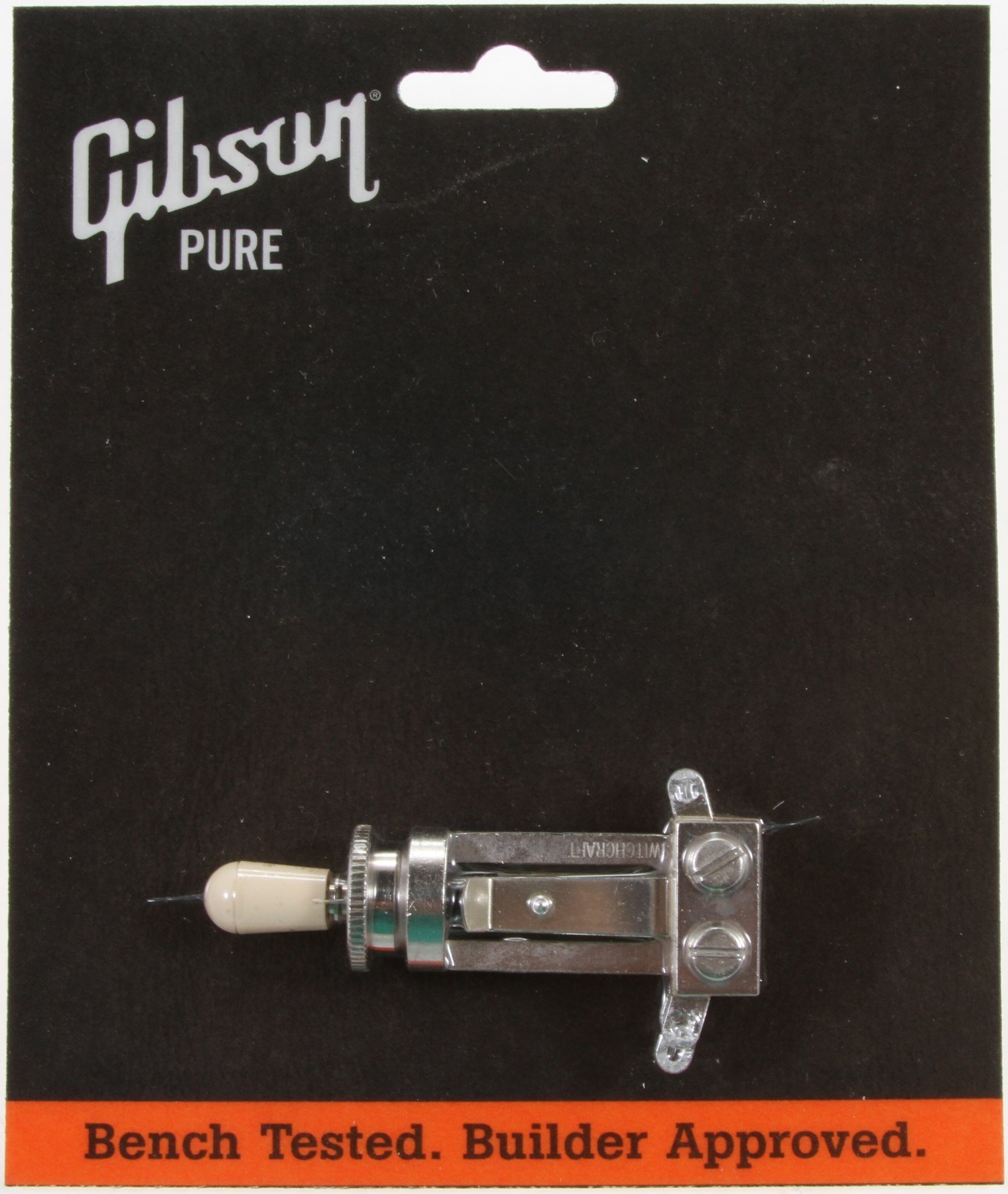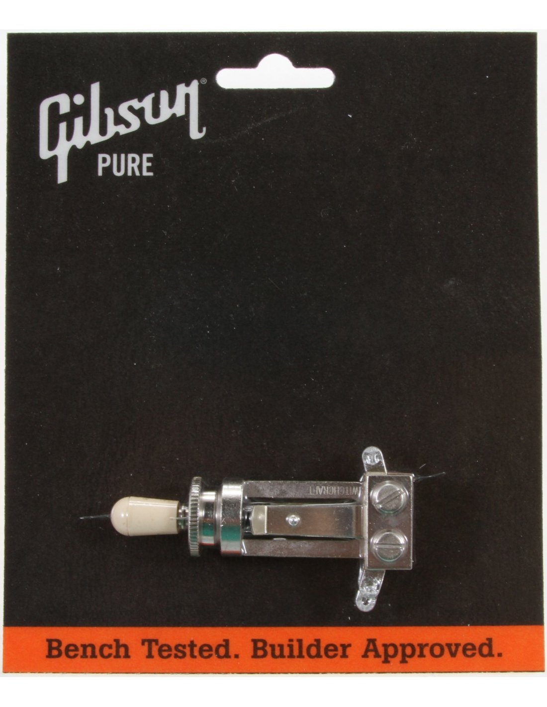 Sélecteur Gibson PSTS-020 Interrupteur à bascule de type droit avec capuchon de commutateur crème. L'interrupteur à bascule de type droit Gibson PSTS-020 avec capuchon de commutateur crème est un sélecteur à 3 positions de type droit utilisé sur les Les Paul Standard et Studio. Il est équipé d'un bouton de couleur crème.