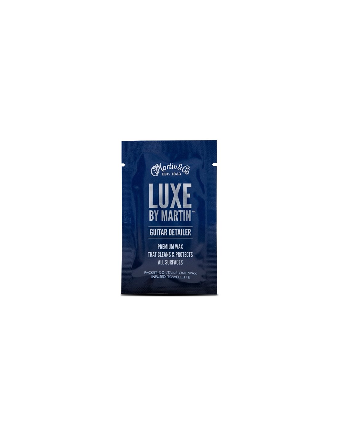Luxe by Martin Guitar Detailer est le chiffon imbibé de cire de la maison Martin & Co, conçu pour nettoyer et protéger toutes les surfaces des guitares, développé en exclusivité avec Zymöl™. La cire et le nettoyant sont fabriqués avec des ingrédients naturels et l'emballage est à usage unique.