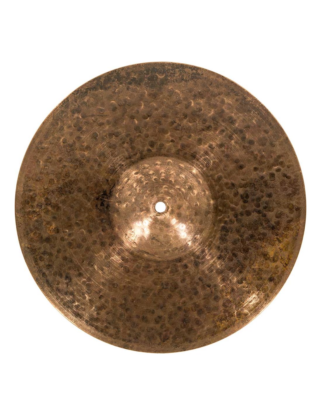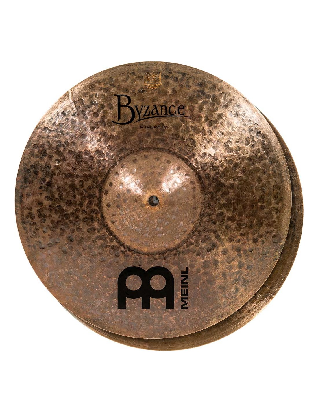 'Hi-hat 14'''' Série Byzance Dark. Les cymbales de la série Byzance Dark sont fabriquées artisanalement dans notre usine en Turquie par des spécialistes et en respectant la tradition tout au long du processus. Toutes les cymbales sont réalisées avec des disques en alliage de bronze B20. Plusieurs techniques sont impliquées dans le processus, tant le martelage que le tournage. La finition Dark unturned donne à chaque cymbale un son défini avec peu de sustain. Très agréable dans le mix.