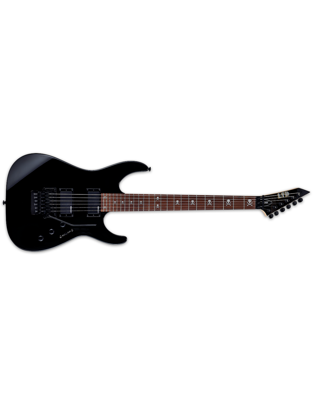 Construction bolt-on - Échelle 25,5” - Corps en tilleul - Manche en érable - Touche en jatoba rôti avec 24 frettes extra jumbo - Rayon 14” - Sillet de 42 mm - Matériel noir - Tremolo Floyd Rose - Mécaniques LTD - Micro ESP