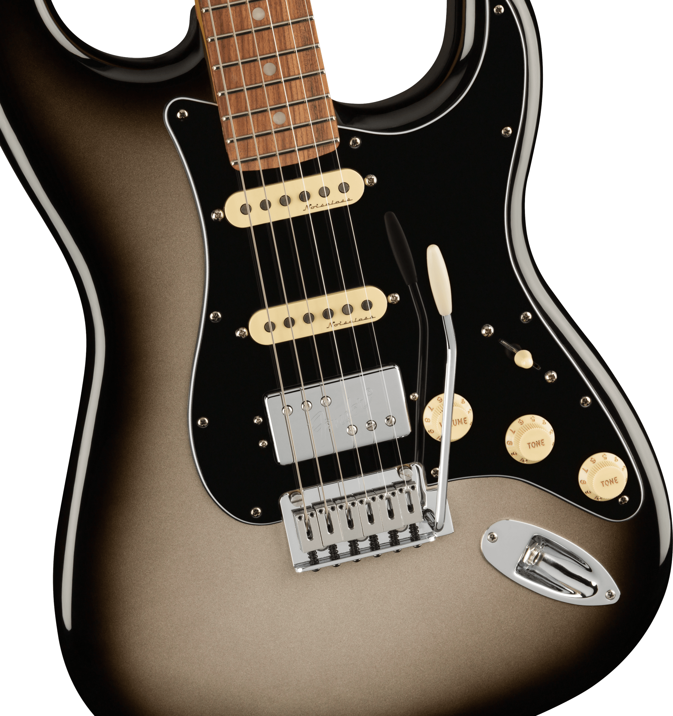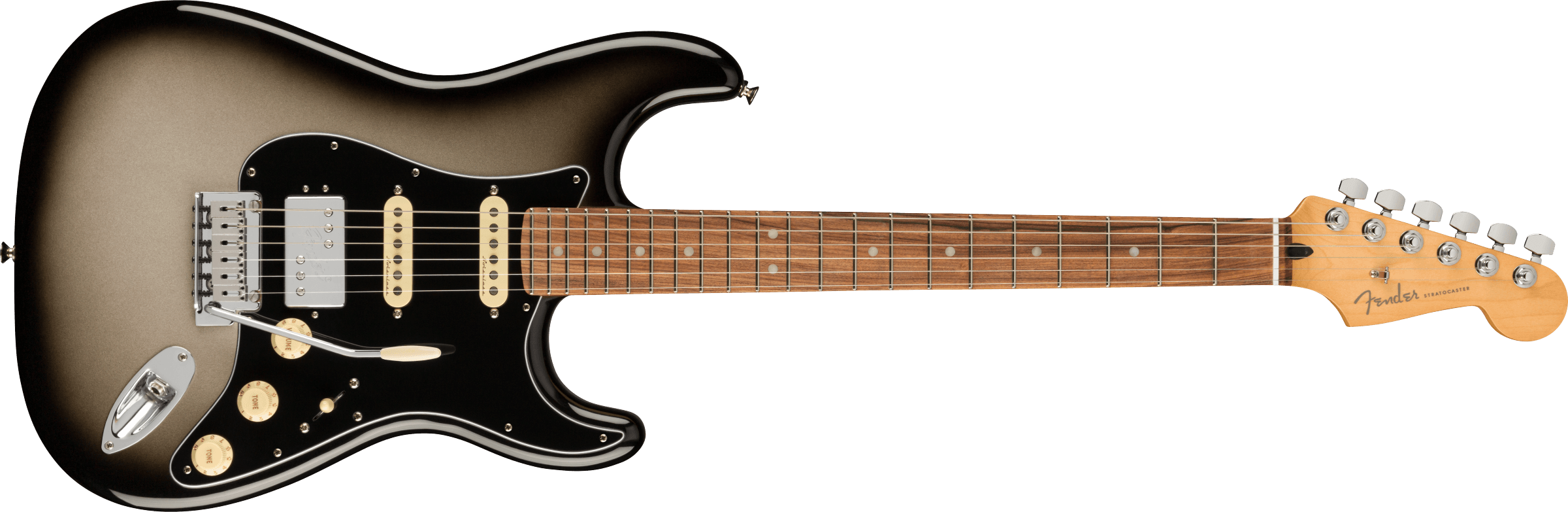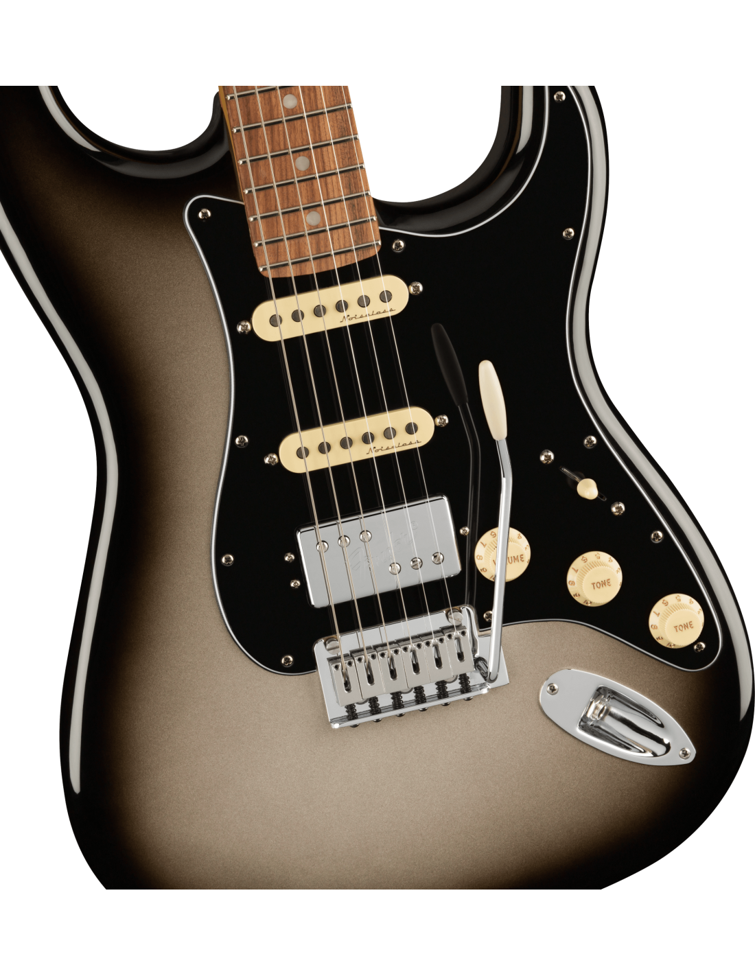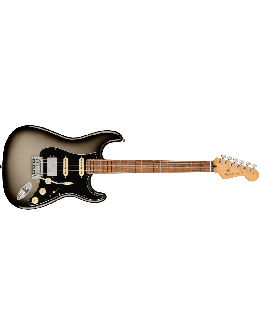 FENDER PLAYER PLUS HSS STRAT PF SVB est une guitare électrique solid body, modèle Player Plus Stratocaster HSS, avec un corps en Alder (aulne) et une finition Gloss Polyester, un manche en érable au profil Modern "C", un doigté en Pau Ferro à rayon 12" avec 22 frettes Medium Jumbo et des incrustations White Perloid Dots avec des points latéraux White, Truss Rod à action unique réglable par la tête, un sillet en os synthétique, un matériel nickelé, des mécaniques Fender Deluxe Cast/Sealed Locking et un pont Tremolo synchronisé en 2 points avec des sellets Block. L'électronique à configuration HSS consiste en 1 pickup Humbucker Player Plus Fireball au pont et 2 pickups Player Plus Noiseless Single-Coil Strat au centre et au manche, avec un contrôle Master Volume, 2 contrôles de tonalité avec Push/Pull sur le ton 1 pour ajouter le pickup au manche aux positions 1&2 du sélecteur et push/Pull sur le ton 2 pour le splitting de la bobine du pickup humbucker, sélecteur de pickup à 5 voies. Inclus Deluxe Bag