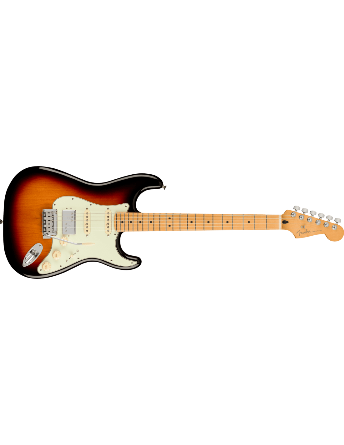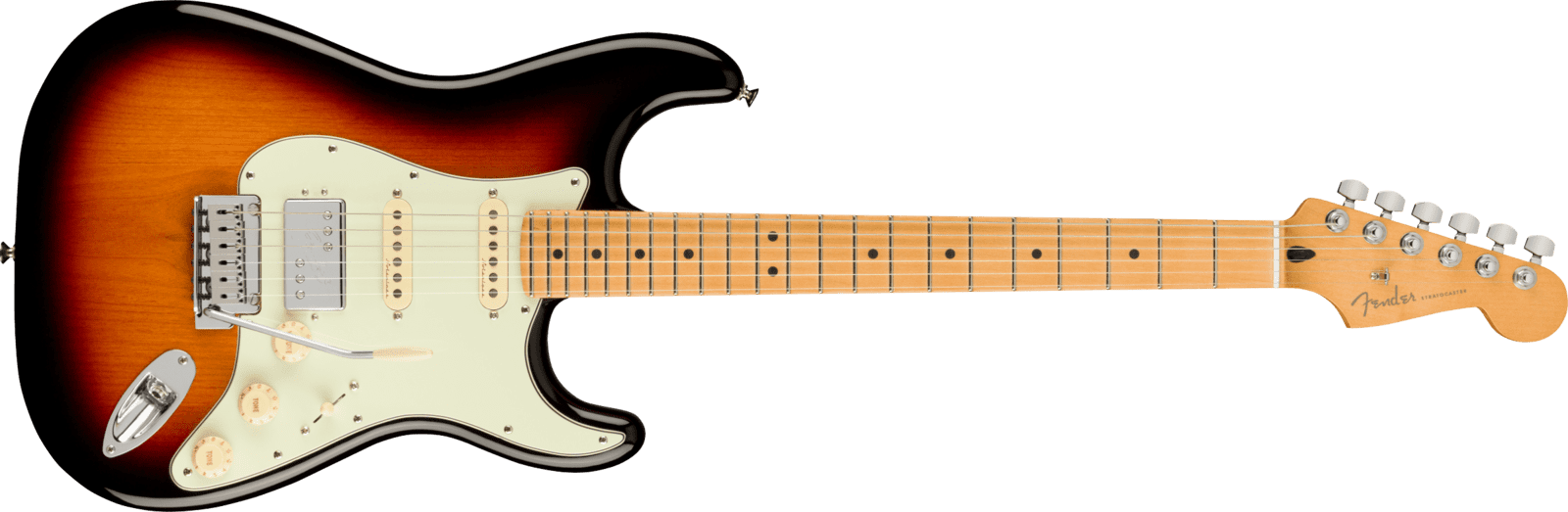 FENDER PLAYER PLUS HSS STRAT MN 3TSB est une guitare électrique Solid Body de la série Fender Player Plus Stratocaster fabriquée au Mexique avec un corps en tilleul, un manche en érable au profil Modern C Shape, un fretboard en érable à rayon de 12" avec 22 frettes Medium Jumbo et des incrustations Black Dots, un sillet en os, un matériel chromé, des mécaniques Fender Deluxe Sealed Locking et un pont Fender 2-Point Synchronized Tremolo. L'électronique en configuration HSS se compose d'un micro Fender Player Plus Humbucking au chevalet et de deux micros Single-coil Player Plus Noiseless Strat au centre et au manche avec des contrôles de volume, de tonalité, un sélecteur de micro à 5 voies et un sélecteur push/pull sur le Ton 2 pour diviser le micro Humbucker. Inclut un étui Fender Gig Bag