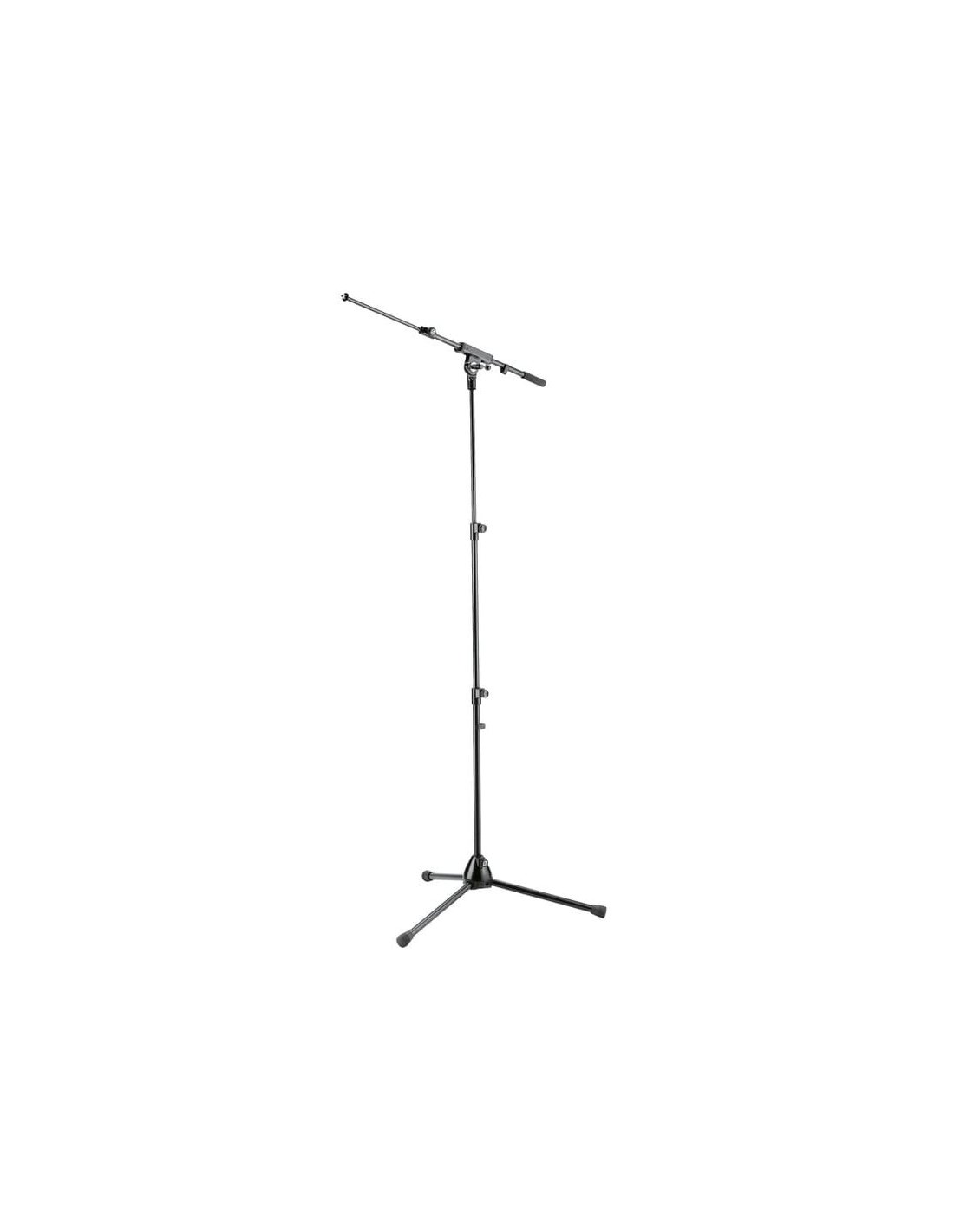 K&M 25200-300-55 ASTA MICROF BK. Asta microphonique noire à girafe réalisée en acier avec 3 pieds pliables, cloche en zinc coulé, bras télescopique extensible en 2 points, filetage de 3/8", hauteur maximale 150cm.