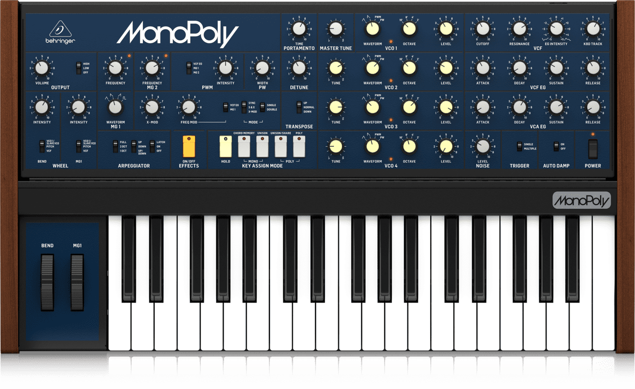 Le Monopoly est un synthétiseur analogique polyphonique à 4 voix de Behringer. Il est équipé de quatre VCO, d'un VCF avec filtre passe-bas à 24 dB par octave et résonance réglable, de deux LFO et de deux enveloppes, d'une section de synchronisation et de modulation croisée, d'un arpégiateur et d'un mode d'assignation des touches qui permet de choisir le style de reproduction (unisson mono, unisson partagé, poly).
