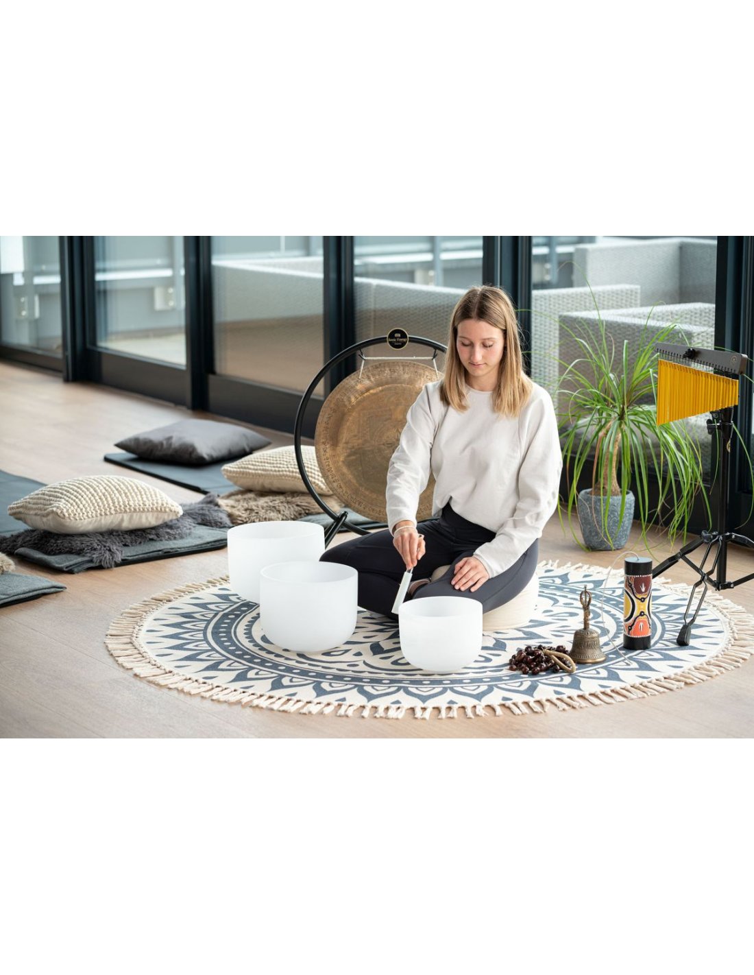 'Le tapis de méditation Meinl Sonic Energy crée un espace autour de vous pour la méditation ou pour vos instruments de guérison par le son. Sa forme ronde avec le magnifique motif floral mandala et les pompons décoratifs crée un lieu visuellement apaisant pour la réflexion et la détente. Le tapis est lavable à 30¡ C et peut être facilement plié et rangé dans le sac à cordon inclus. Veuillez laver le produit avant la première utilisation.Couleur : Or Vintage Diamètre : 200 cm / 78''45 % coton, 45 % polyester, 10 % viscoseIdéal comme centre de vos activités méditatives ou comme élément décoratifLavable en machine à 30¡Design floral mandalaSac avec cordons inclus'