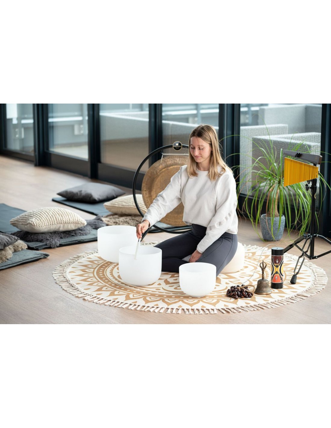 'Le tapis de méditation Meinl Sonic Energy crée un espace autour de vous pour la méditation ou pour vos instruments de guérison par le son. Sa forme ronde avec le magnifique motif floral mandala et les franges décoratives crée un lieu visuellement apaisant pour la réflexion et la détente. Le tapis est lavable à 30°C et peut être facilement plié et rangé dans le sac à cordon inclus. Veuillez laver le produit avant la première utilisation.Couleur : Bleu Marine Diamètre : 200 cm / 78''45 % coton, 45 % polyester, 10 % viscoseIdéal comme centre de vos activités méditatives ou comme élément décoratifLavable en machine à 30°Design floral mandalaSac avec cordons inclus'