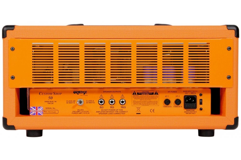 Tête d'ampli guitare Custom Shop. Câblage à la main. Complètement à lampes. 1 canal. 50w Classe A/B et 30w Classe A. Égaliseur commutable. Commandes : gain, basses, médiums, aigus, HF Drive, volume master. Commutable 50w/30w. Lampes : 2 x ECC83/12AX7 et 2 x EL34. Sorties haut-parleur : 1×16ohm, 1×8ohm ou 2×16ohm, Dimensions : 55×27x24cm. Poids : 18.55kg. Sons blues-rock. Son britannique classique. L'essence même.