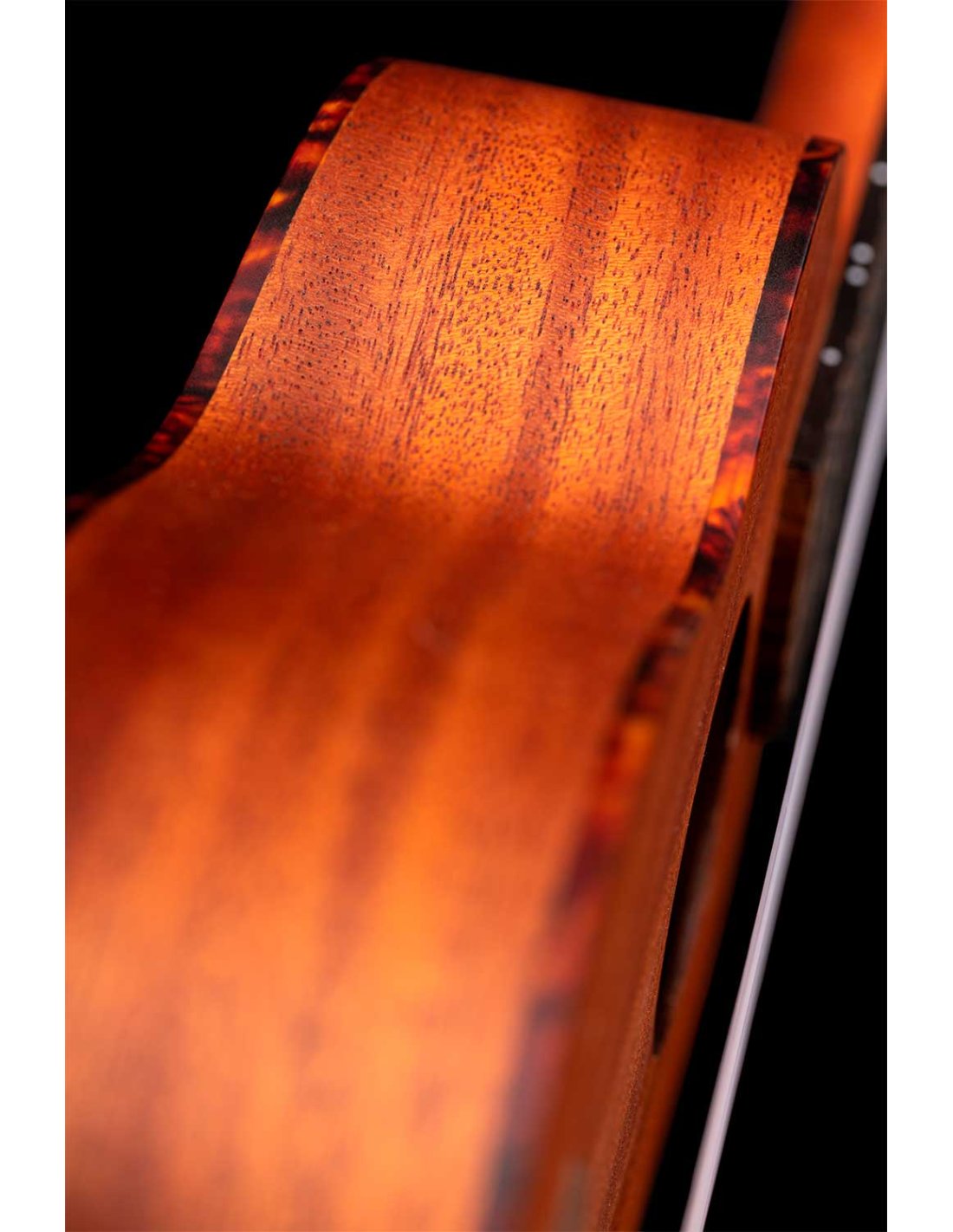 La série best-seller Bonfire présente le classique savoir-faire Ortega avec une touche de style. Disponible dans toutes les tailles standard, avec ou sans électronique, une variété de choix et de formes en bois, et avec une gravure au laser attrayante, il y a un ukulélé Bonfire pour tous, même pour les gauchers. Un ukulélé classique et abordable avec une gravure au laser distinctive et une électronique avec accordeur intégré, table en épicéa, finition satinée, motif gravé au laser.Dos et éclisses en Sapele, finition satinéeManche en acajou, finition satinéeBinding en ABS tortoiseTablette et chevalet en noyerÉlectronique Ortega MagusE avec accordeurMécaniques en métal chromé, avec chevilles noiresCordes Ortega UWNY-4-CC