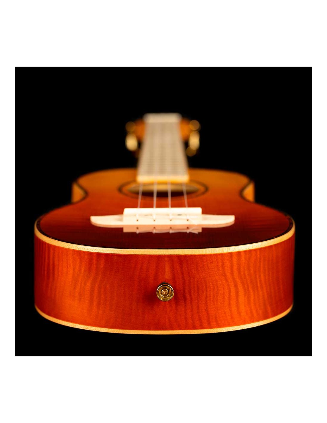Ukulele ténor RUPR-TQB Prism Série. Corps en acajou flammé avec Too, touche, chevalet et manche en acajou. Finition semi-brillante. Binding en acajou peint sur le corps et en abalone sur la rosace. Mécaniques dorées. Équipé des cordes Ortega UWNY-4-TE. INCLUT UNE Housse DE LUXE. Échelle 432mm