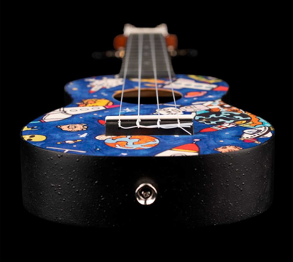 'I Pack Ukulele ®Keiki sont disponibles en 6 designs créatifs, ''l'idée ne doit pas être conventionnelle''.Table en Agathis, conçu sur mesureCorps en ABS, légèrement courbéTête Keiki® avec placage conçu sur mesureManche en Okoumé, finition satinéeDiapason et chevalet en ABSMécaniques ouvertes chromées avec chevilles noiresCordes Ortega UWNY-4-SOAccordeur à la tête, sangle / support à crochet au trou de résonance, 5 médiators moyens et sac à cordon inclus