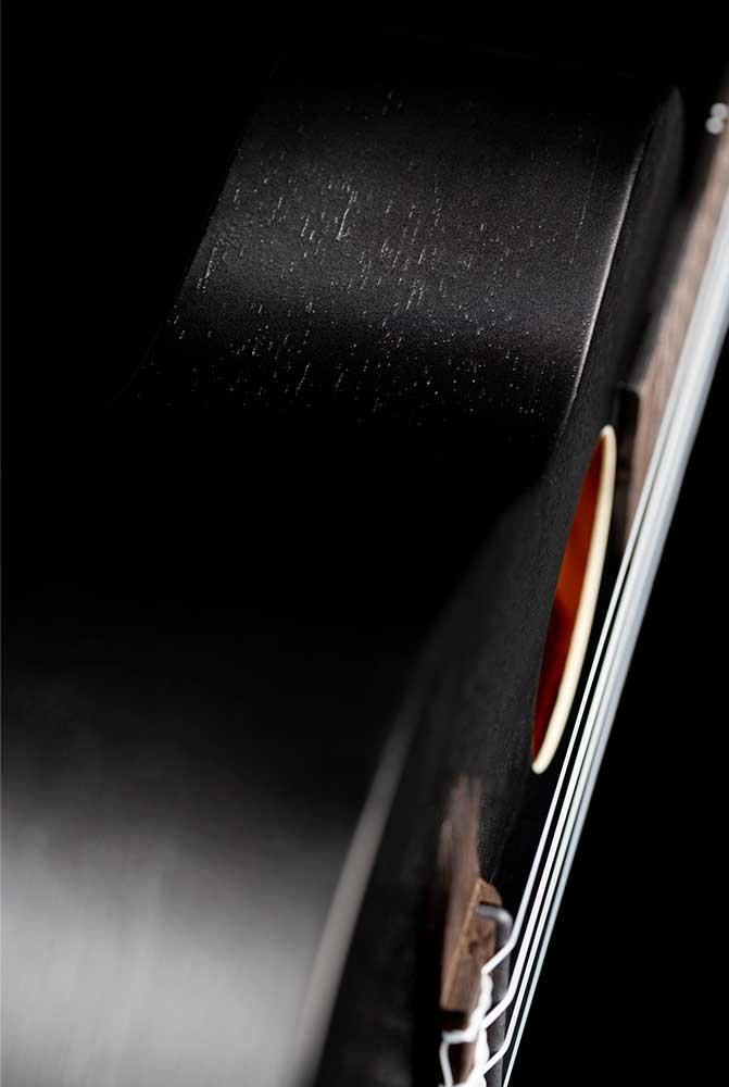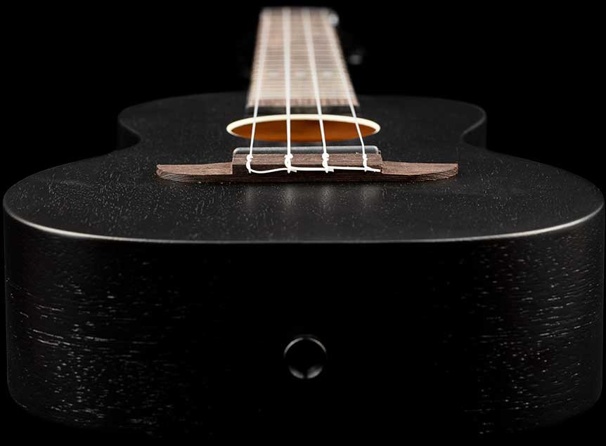 Uklele Concerto RUHZ-BK Horizon Série. Corps en Okoumé, table en okoumé, manche en okoumé, touche et chevalet en tecwood. Finition satinée noire. Style de tête inversée `` métal ''. Binding en ABS noir sur le manche. Échelle 376 mm