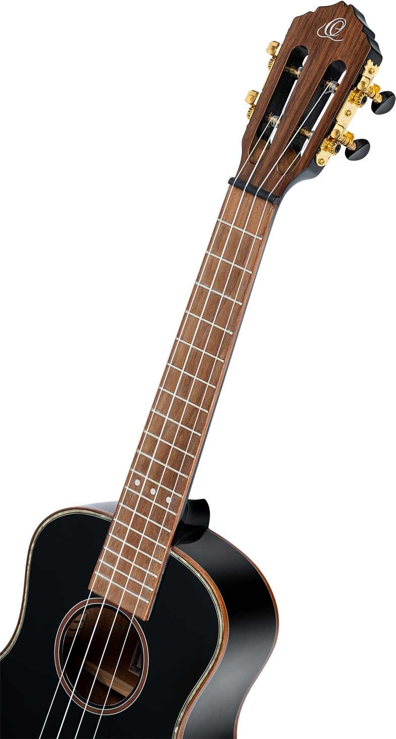 Les Ukeeles de la série Onyx sont de magnifiques instruments qui ont un corps en acajou et un manche, une finition noire brillante, une table en noyer, un sillet de tête et un chevalet, ainsi qu'un cachet à fente. Ils sont disponibles en taille soprano, concert ou ténor.